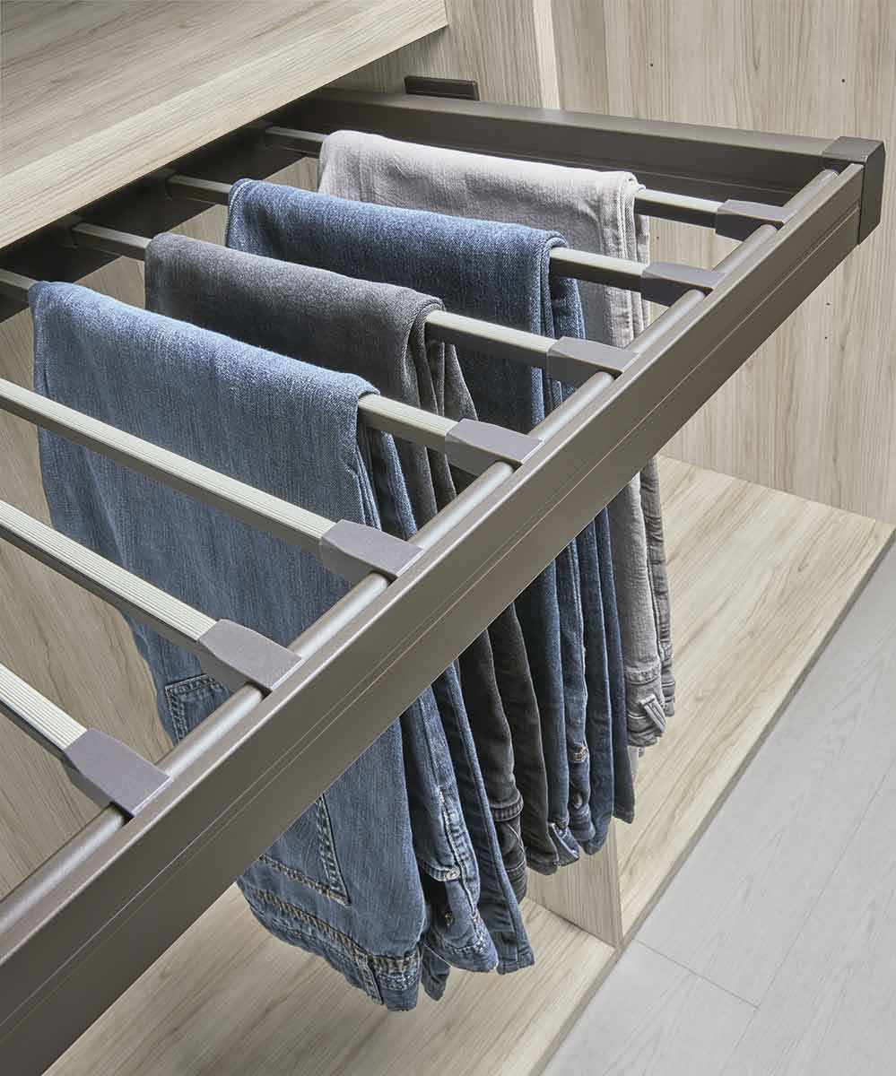 Este armario tiene de 6 puertas abatibles con un divertido juego de paneles asimétricos con diferentes grosores donde el cliente elige el color deseado en cada panel. Los interiores de este armario son completamente personalizados con todos los complementos que puedas imaginar, cajoneras interiores, pantaloneros extraíbles, camiseros….para que puedas diseñar tu armario como un auténtico vestidor.
