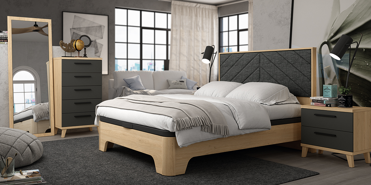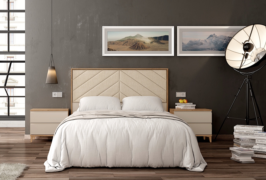 ¿Te gustaría dar contraste a tu dormitorio con un cabezal combinado en tejido y colores de madera?