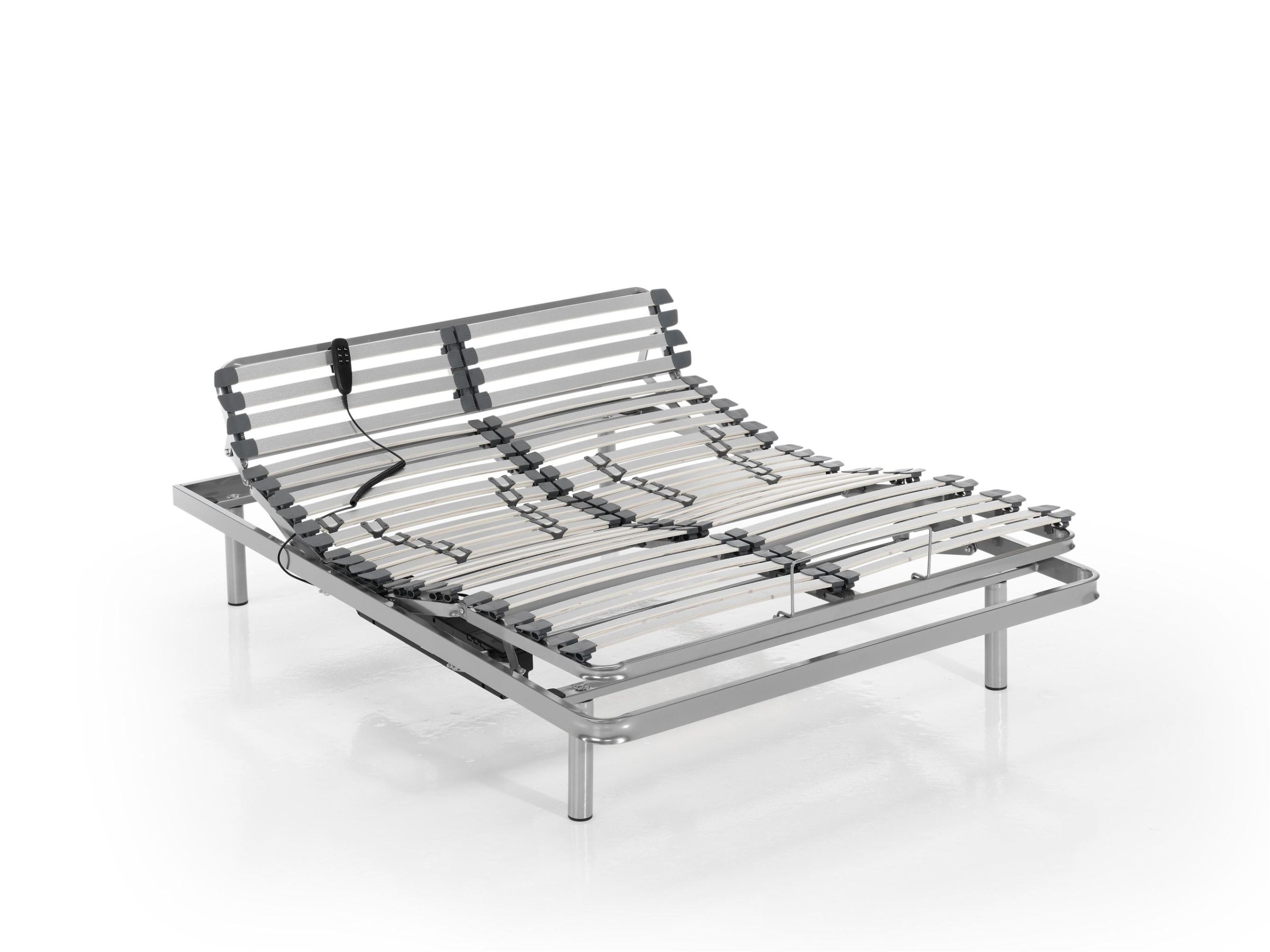 Consta de 5 planos articulados por motor doble con mando con cable, siendo fijo el plano lumbar, que a su vez incorpora doble lama y cursores para la regulación de la firmeza.