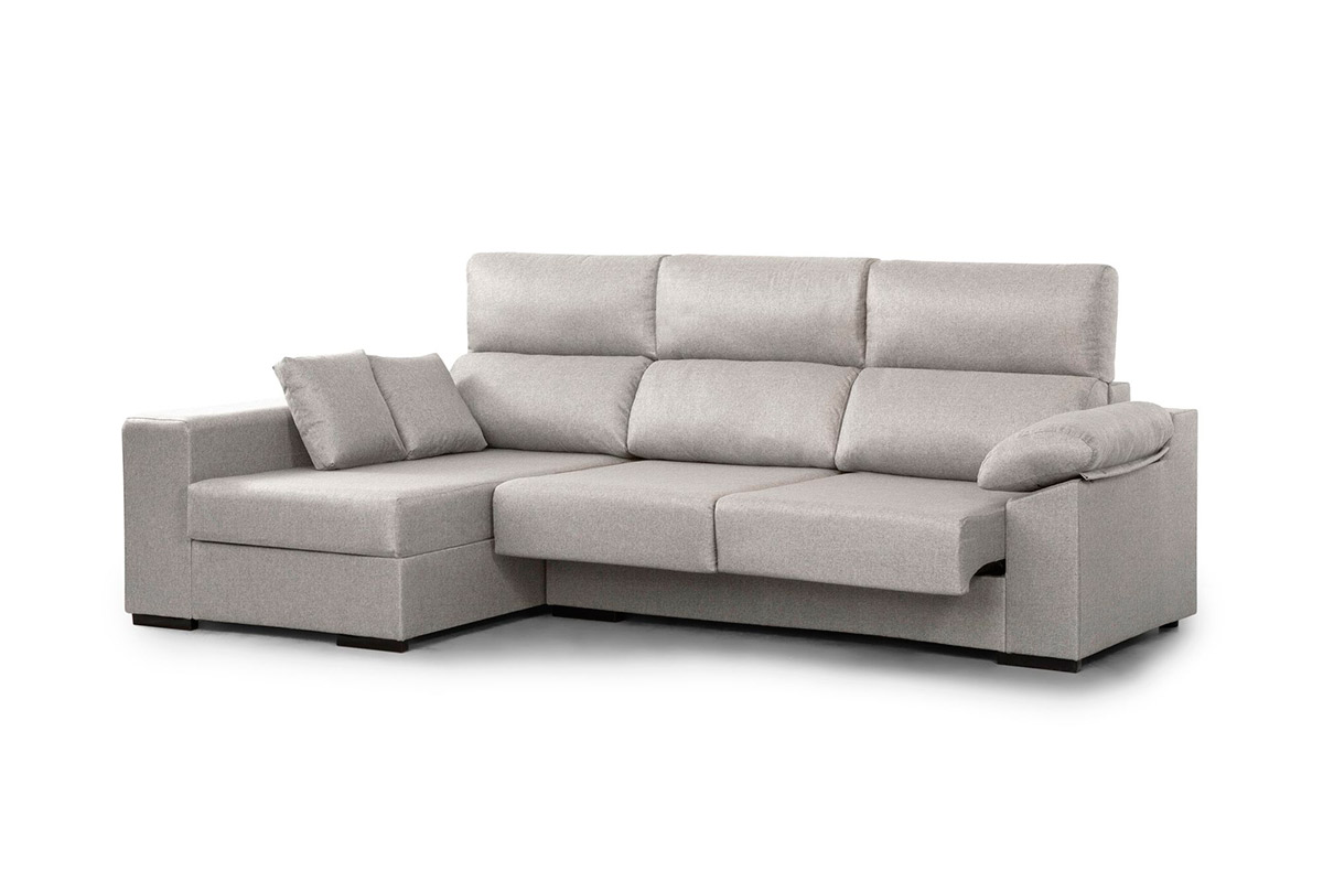 Comodísimo chaisse longue + modulo 2 plazas de 2,25, idela para espacios más reducidos, se puede elegir con la pieza de la chaisse longue a derechas o izquierdas, dependiendo de las medidas y distribución de tu salón comedor. Incluye los asientos extraibles y respaldos reclinables.