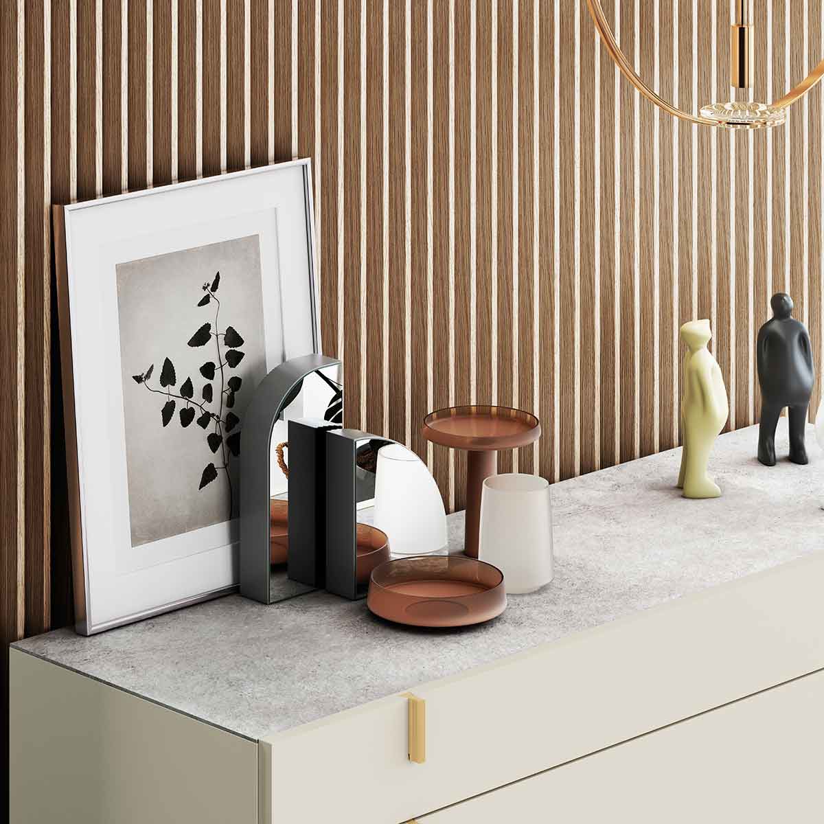 La inserción del tirador en el cajón hace de la cómoda TAO 3D un elemento único de diseño contemporáneo dentro de esta colección. Se compone de 1 cajón estrecho y uno ancho además esta cómoda equipada con guías BLUM de cierre amortiguado.