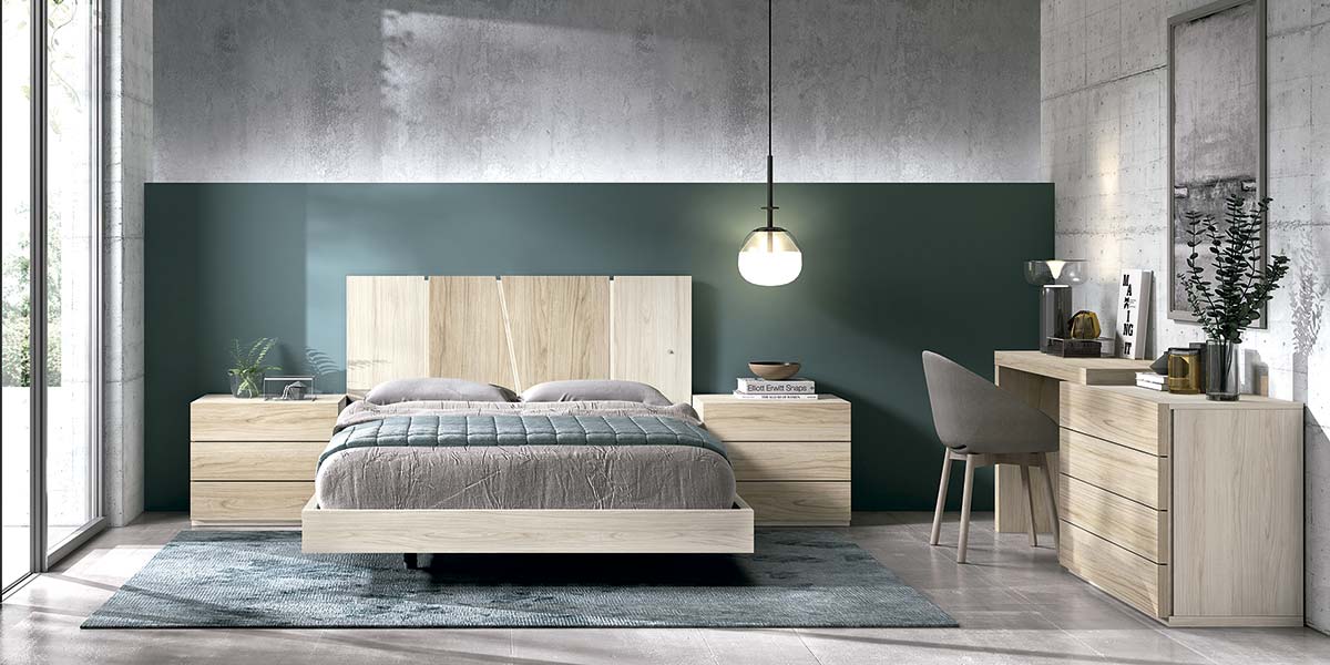Se ha combinado con unas mesitas de noche de 3 cajones y aro de bañera, para poder ajustar la ropa de cama por dentro de este y el resultado lo podemos apreciar en la fotografía la impresión es que la cama queda en el aire, opcionalmente esta marca tiene canapé abatible en caso de que tengas falta de espacio para organizar tus cosas sustituyendo el aro de bañera.