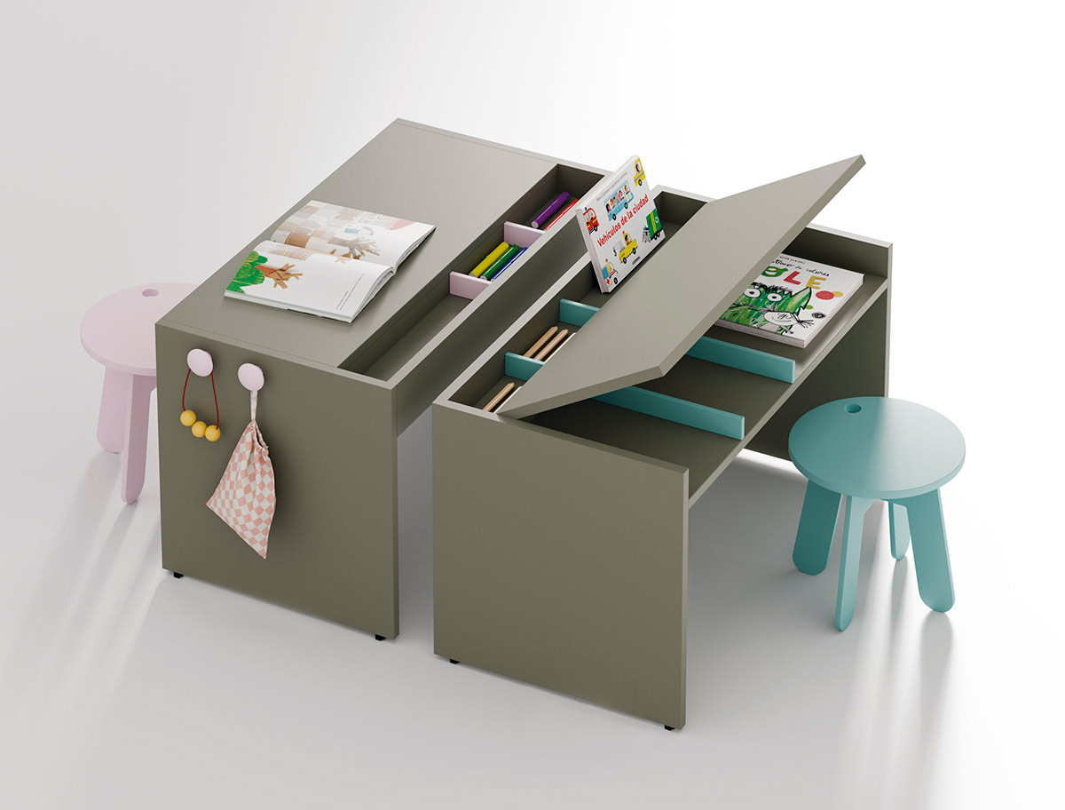 La zona de estudio esta diseñada a la altura de los más pequeños, basada en el método Montesori logrando tener alcance a todos sus juguetes aportando autonomía y libertad. Como veis tenemos todo tipo de mesas de estudio juveniles.
