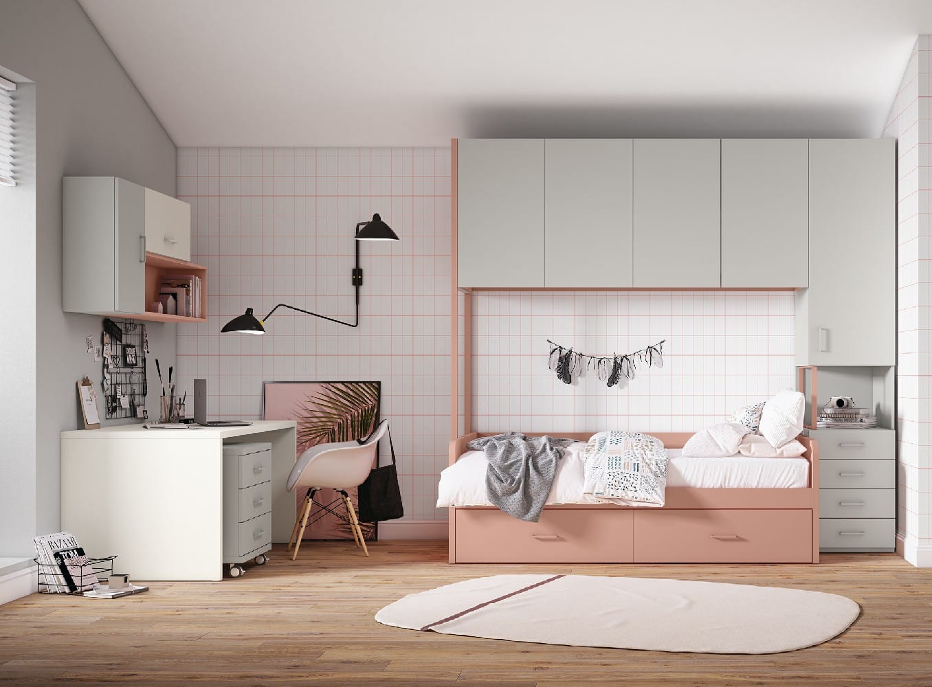 Esta habitación juvenil ha sido diseñada para adaptarse a sus necesidades cambiantes, cada módulo ha sido pensado para maximizar el espacio y ofrecer la máxima funcionalidad, permitiendo crear un ambiente organizado y lleno de posibilidades.