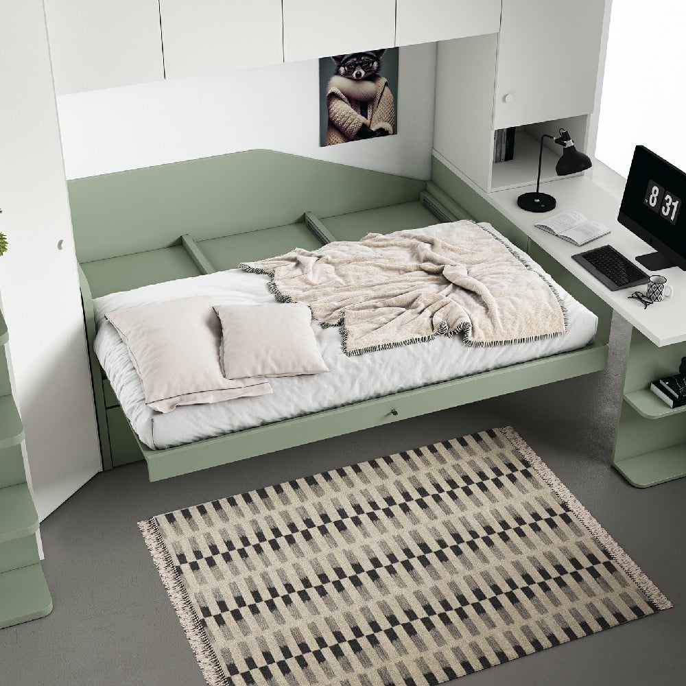 En resumen, este dormitorio es un espacio pensado al detalle para el crecimiento, el descanso y el estudio, ofreciendo soluciones de almacenamiento inteligentes y un diseño adaptable. ¡Es el lugar perfecto para que tu hijo o hija se sienta a gusto y tenga todo lo que necesita a su alcance! ¡No dudes en contactarnos para diseñar el suyo a medida!