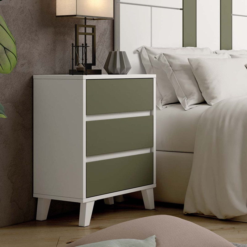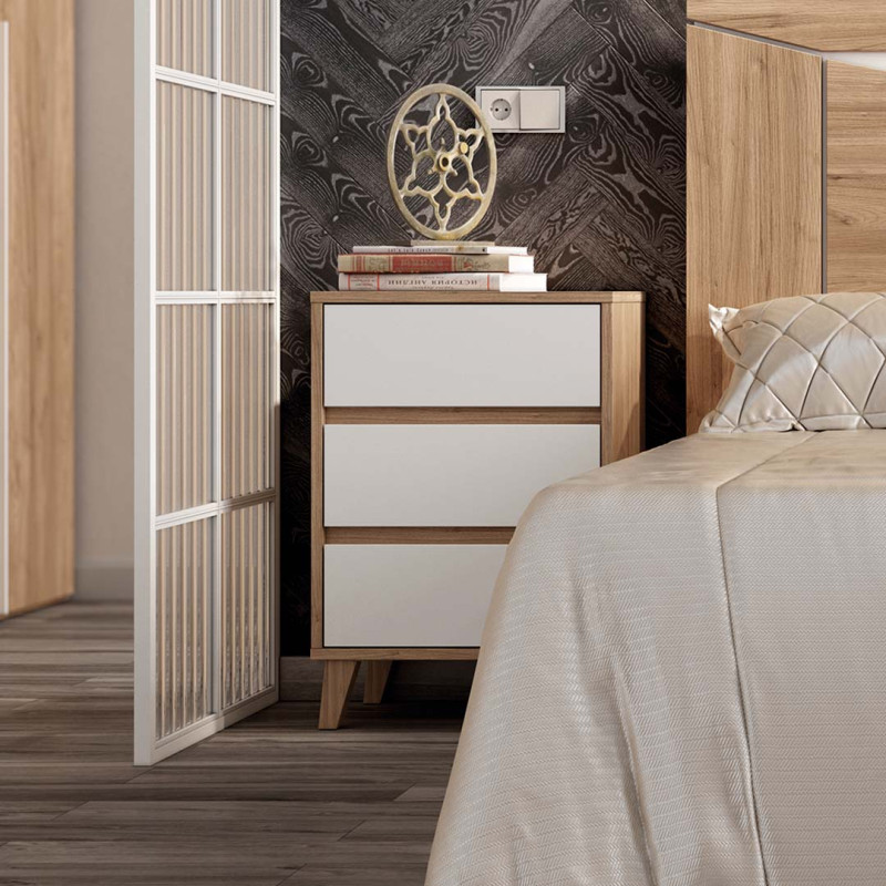 Conjunto cabecero de 90 cm y mesita de noche 3 cajones de 40 cm