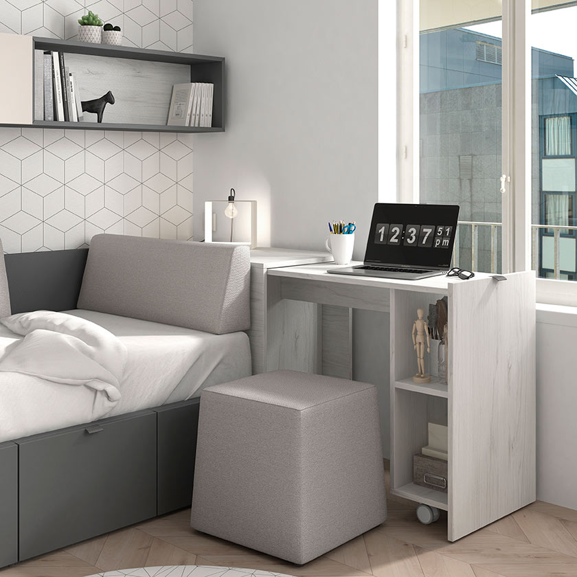 ¿No cabe una mesa estudio en vuestra habitación? Tenemos una solución: podéis utilizar un escritorio extraíble y sacarlo solamente para estudiar y hacer los deberes, ¡es ideal!
