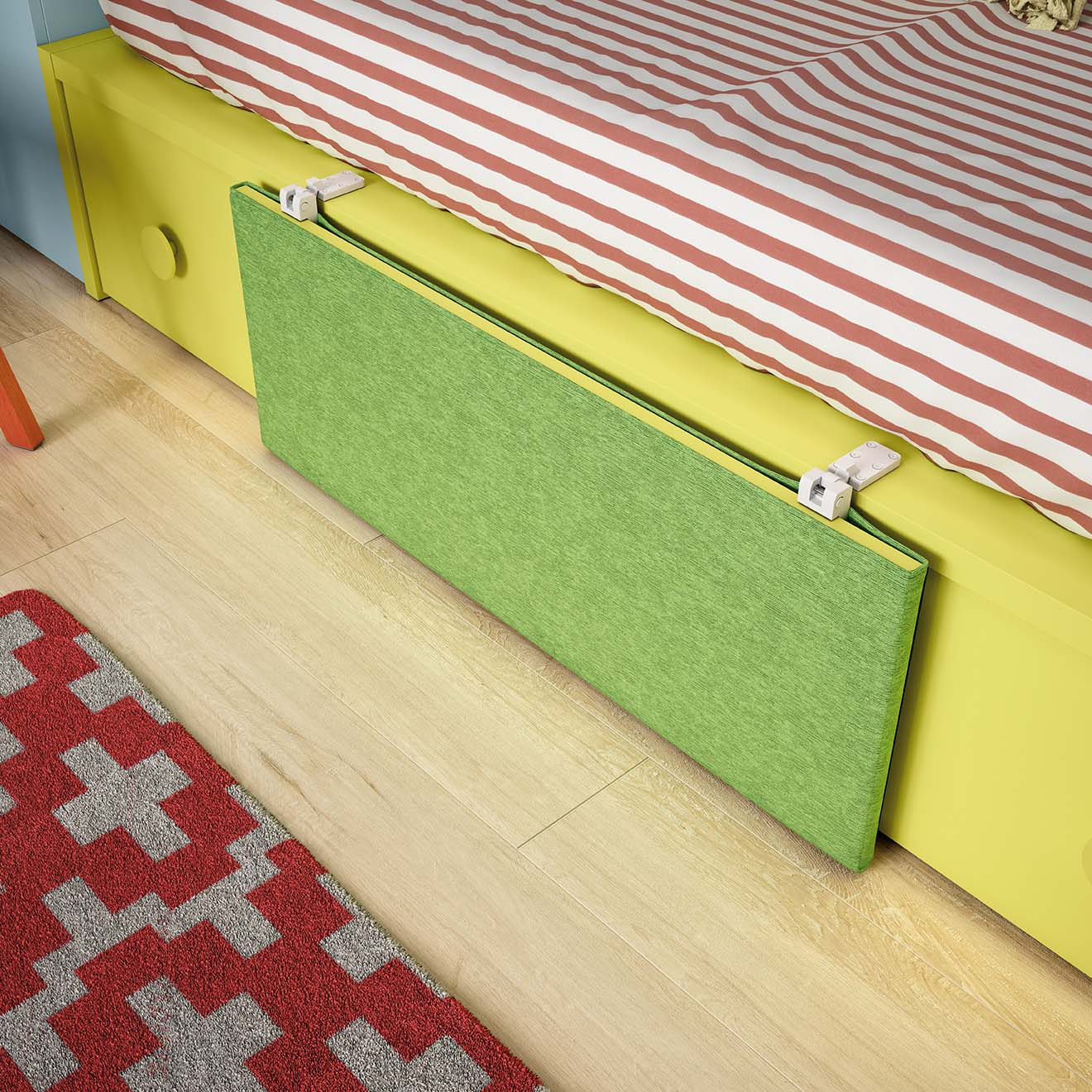 Esta barrera tapizada le encantará y se sentirá segur@. La puedes personalizar con su color favorito, disponibles en la nueva colección delulu de ROS. El quitamiedos será su aliado, le arropará para su seguridad.