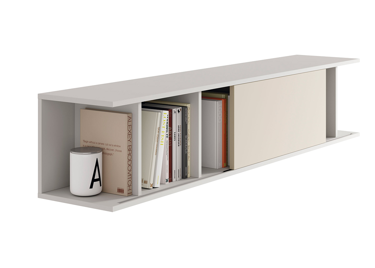Dormitorio juvenil con cabezal y base plana, contenedores, mesa estudio, armario dressbox y estanteria airbox