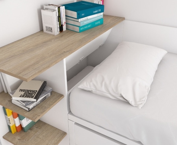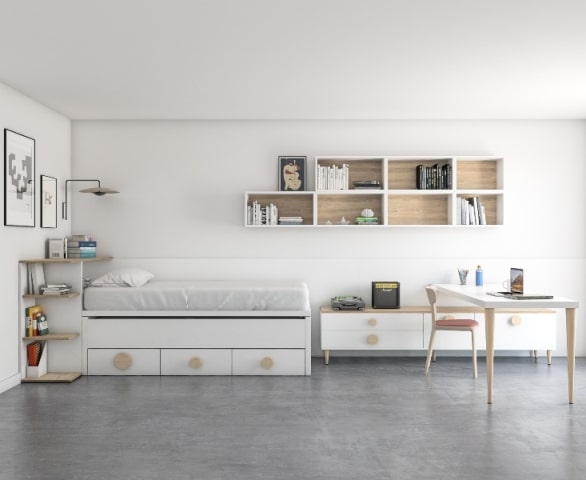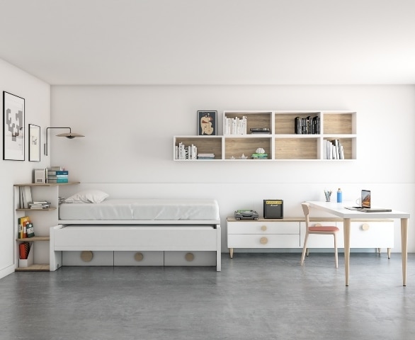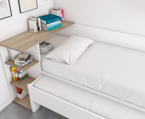 En este caso hemos escogido un bicama con cama telescópica cerrada y tres cajones en la parte inferior.