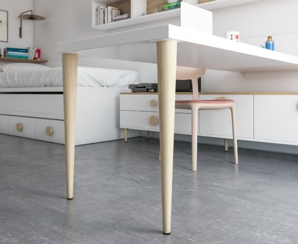 En el otro extremo, las patas OSLO XL de fresno natural le dan un toque nórdico, pero podríamos utilizar también una pata cuadrada metálica, una pata LOFT, una pata de melamina…TÚ ELIGES!