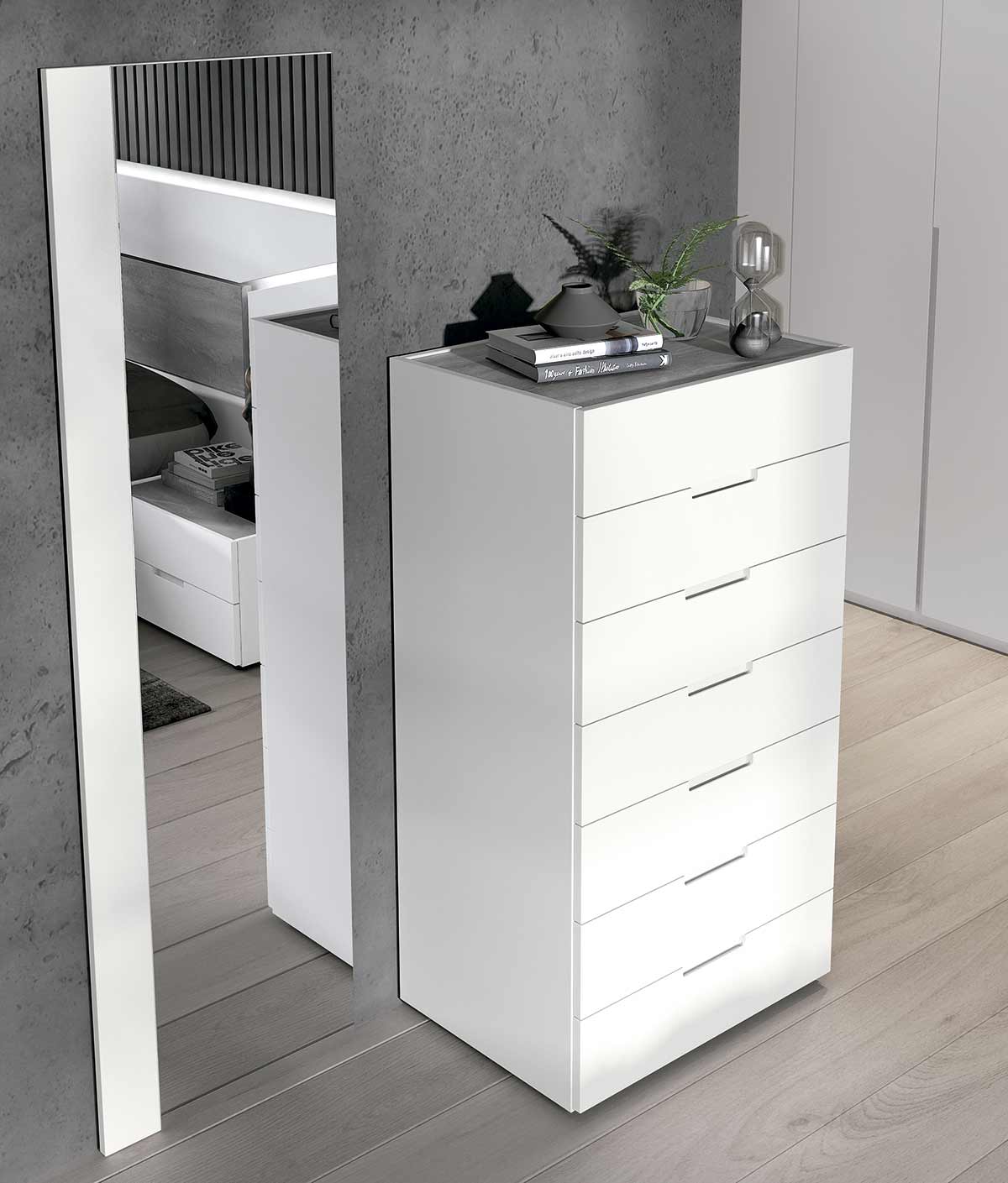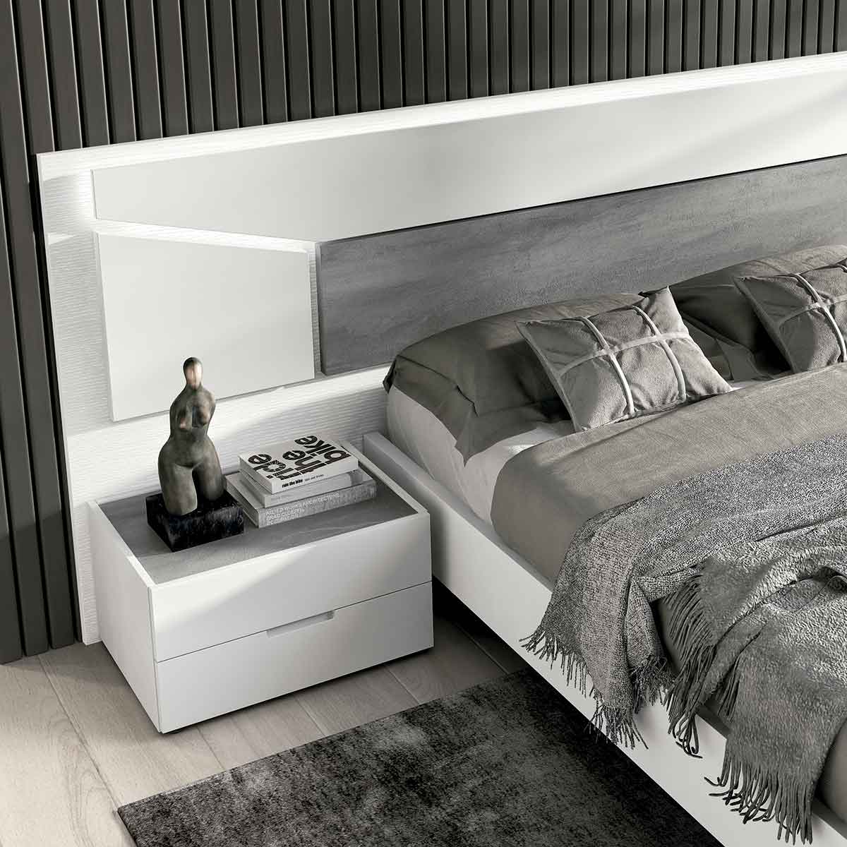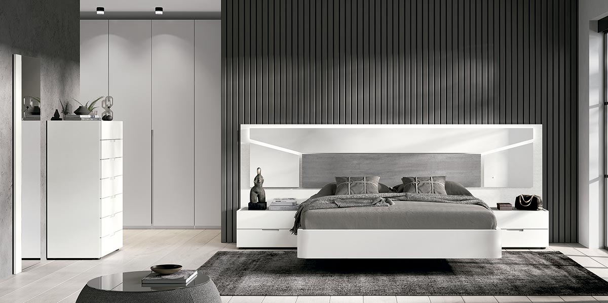 Dormitorio de matrimonio acabado en Lacado Blanco y Luxor, este último es un color imitación a piedra natural nunca visto en otras marcas de dormitorios matrimonio. Consigue un resultado muy luminoso a la vez de elegante, muy diferente a todo lo demás. Nosotros somos partidarios de que los muebles con los que decoramos nuestro hogar siempre hablan de nosotros, de nuestros gustos, de nuestra personalidad y en realidad todos somos diferentes.