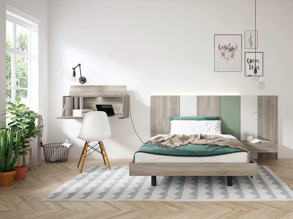 Este modelo de cabeceros de cama permite jugar con las alas del mismo adaptándose a cualquier espacio, tal y como podemos ver en los detalles fotográficos se puede poner tan solo con un ala para una mesita, ó directamente sin alas y que el cabezal ocupe la medida del colchón dejando las mesitas fuera.