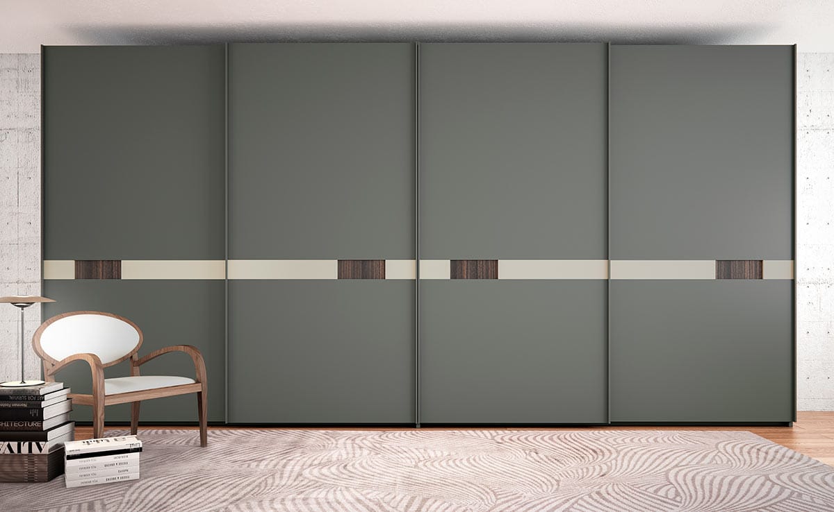 Se ha combinado con un armario de puertas correderas disponible a medida de tu dormitorio de matrimonio.