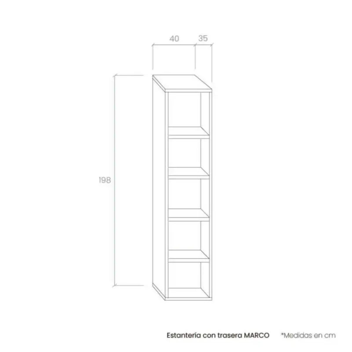 Optimiza tu espacio con elegancia y verticalidad gracias a nuestra estantería de 40 cm de largo y 198 cm de alto, una pieza esbelta diseñada para ofrecer el máximo almacenaje ocupando la mínima superficie. Gracias a su trasera completa, esta estantería no solo garantiza una robustez estructural superior, sino que también protege tus paredes y enmarca tus libros o elementos decorativos, creando un fondo visualmente ordenado y de gran calidad. Sus dimensiones la convierten en la solución ideal tanto para flanquear un mueble de TV como para aprovechar esos espacios desaprovechados en el salón o el despacho.