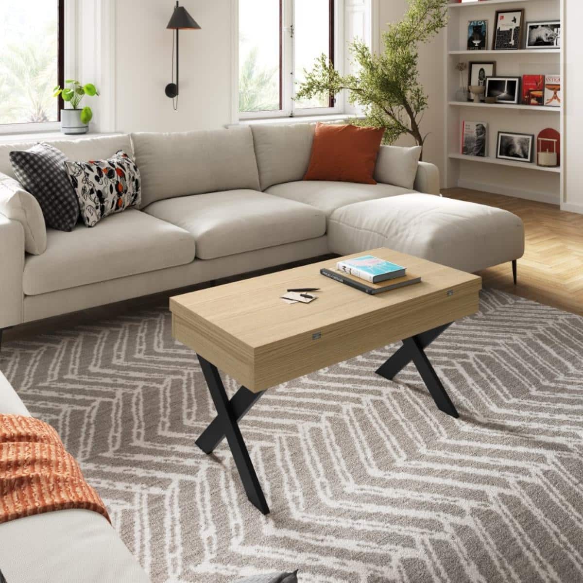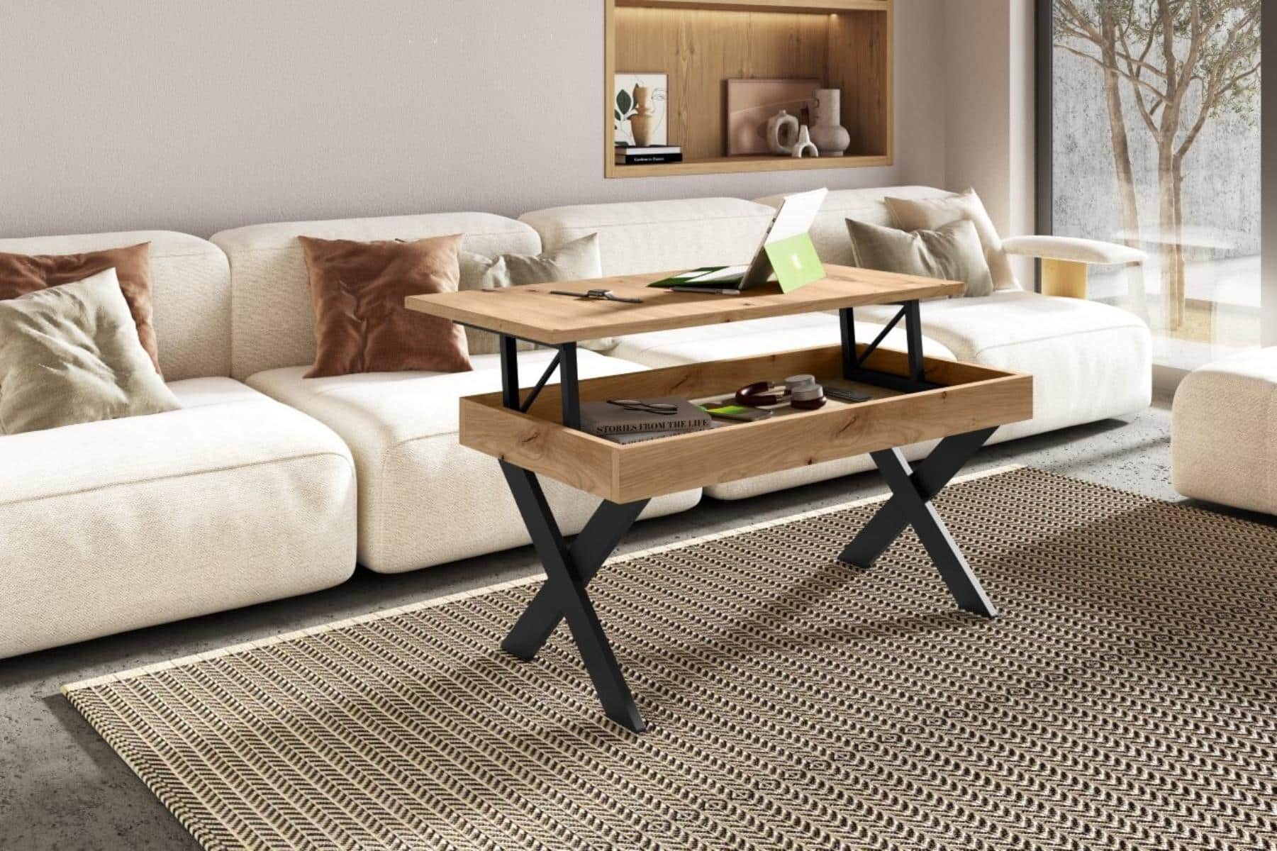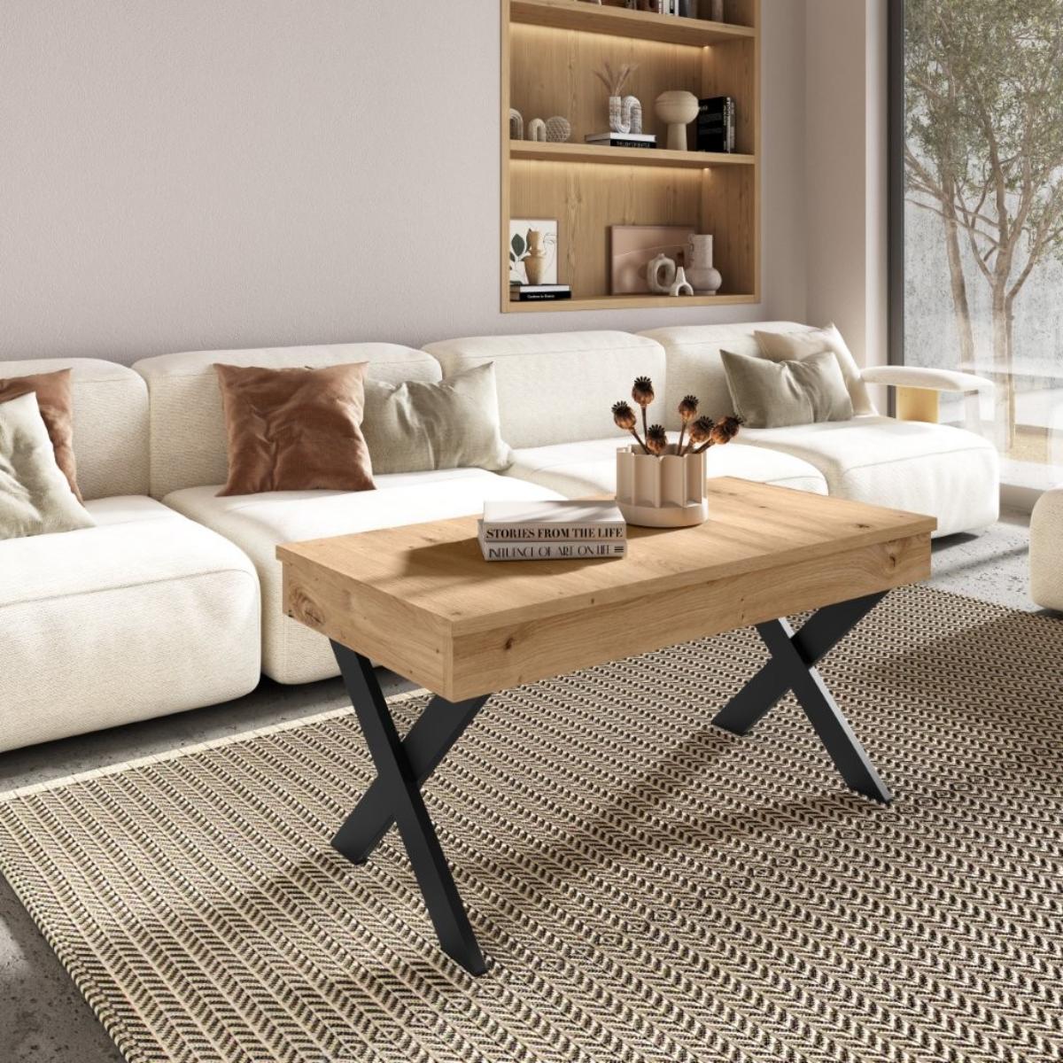 Nuestra mesa de centro de 100 x 50 cm es la definición de inteligencia aplicada al diseño. Con una estética de líneas rectas y depuradas, esta pieza ha sido creada para adaptarse al ritmo de la vida moderna, donde el salón es a la vez zona de descanso, oficina y comedor improvisado. Su diseño se apoya sobre unas elegantes patas metálicas en “X”, que aportan ese toque industrial y contemporáneo que caracteriza a nuestra colección, garantizando una estabilidad excepcional en cualquier posición.