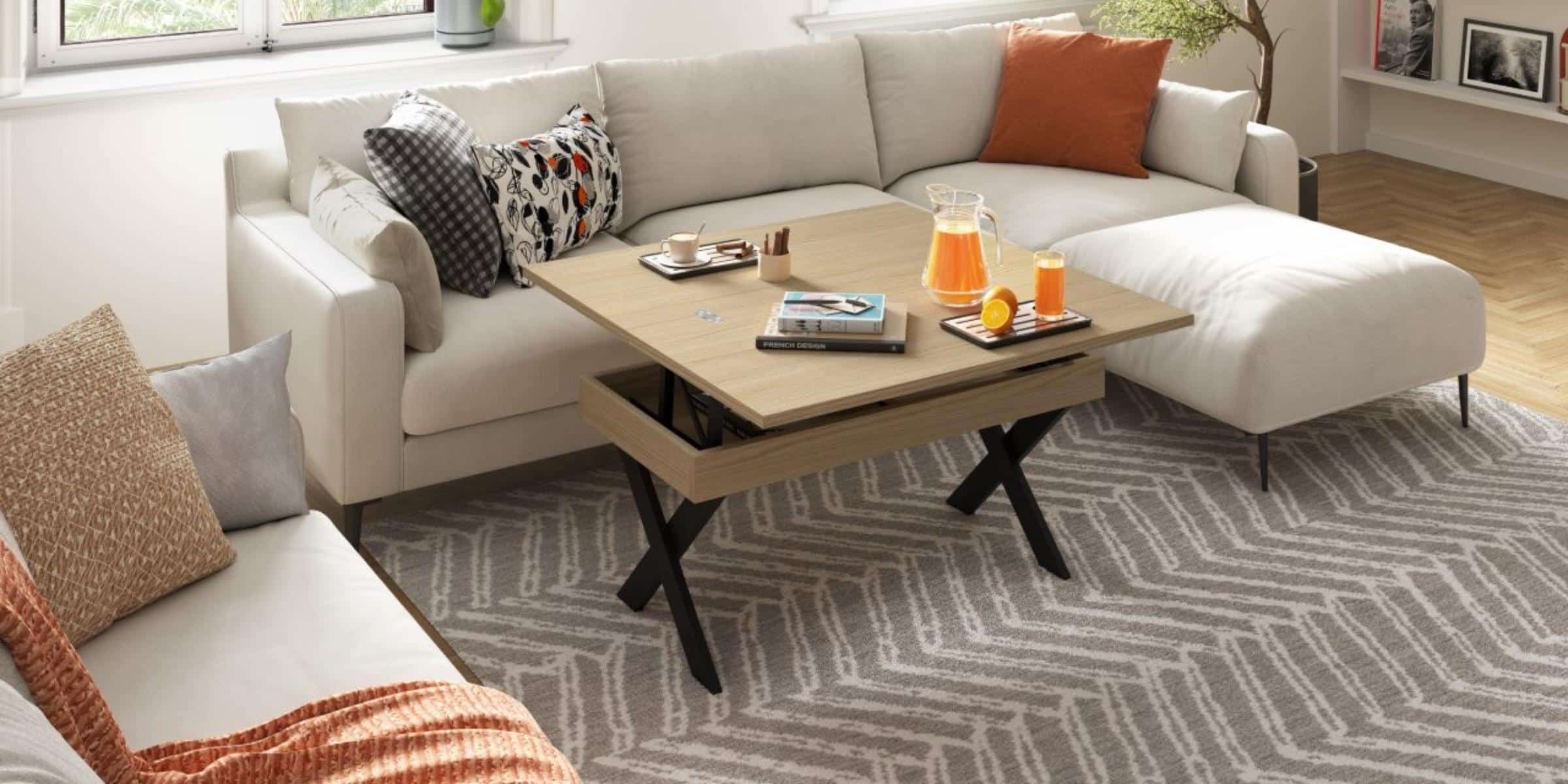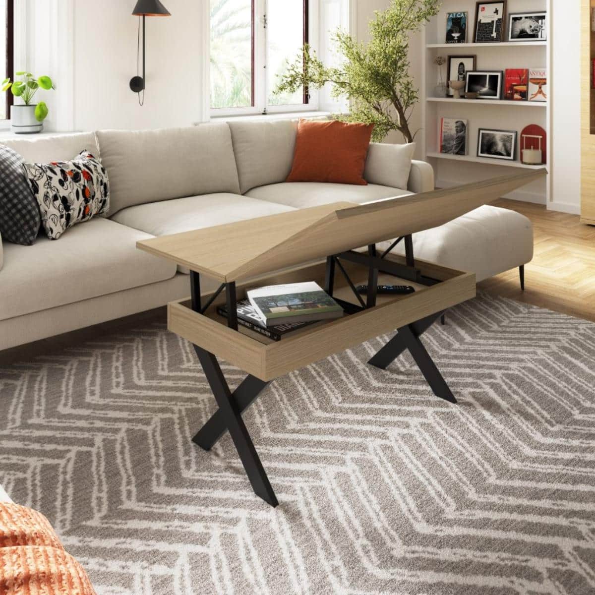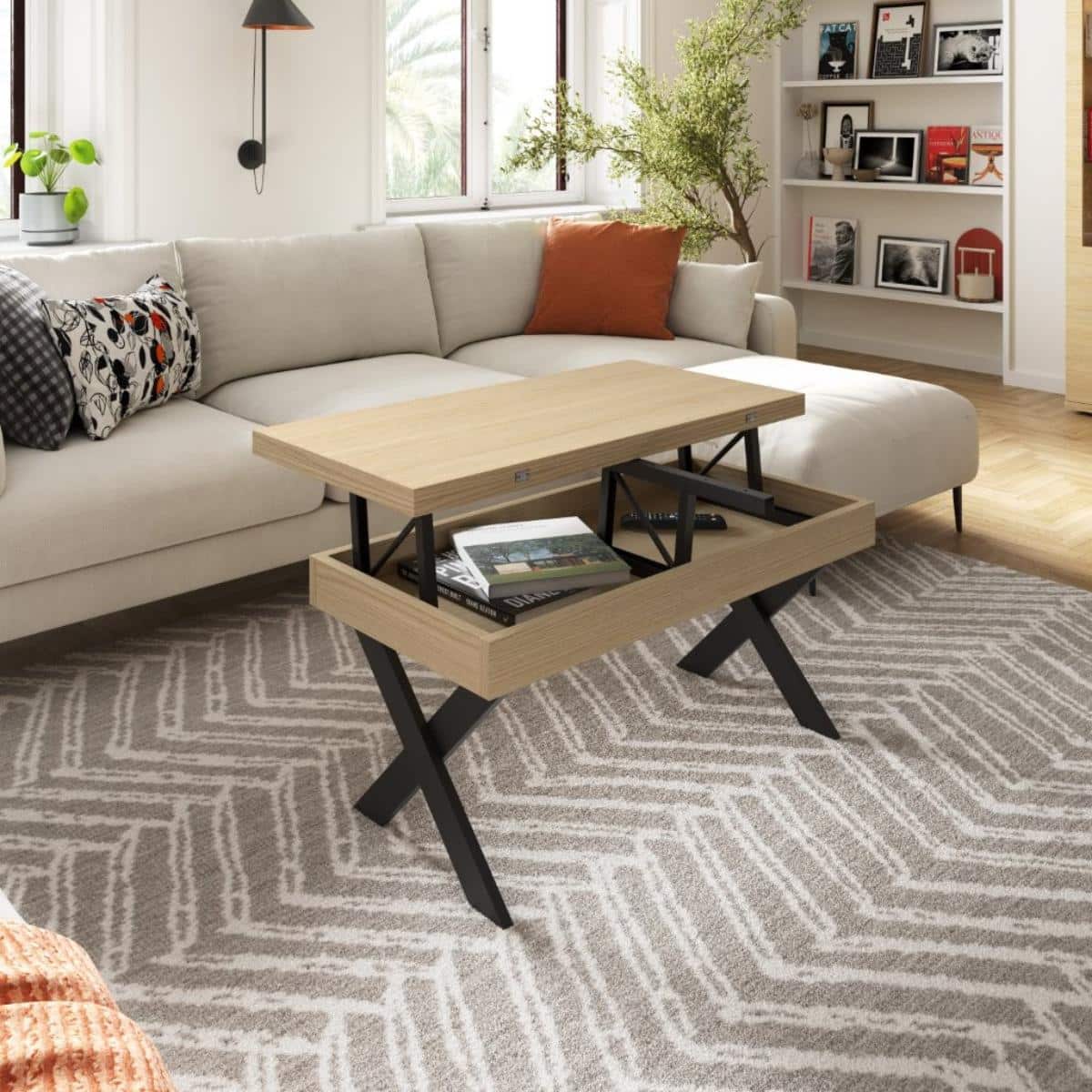La verdadera magia de esta mesa reside en su versatilidad mecánica, permitiéndote elegir el sistema que mejor se adapte a tus necesidades. Puedes optar por el mecanismo elevable estándar, ideal para trabajar con el portátil o cenar cómodamente desde el sofá, o dar el salto al sistema elevable y convertible. Esta última opción permite que la mesa, además de elevarse, se abra para duplicar su superficie hasta los 100 x 100 cm, transformando tu zona de descanso en una mesa de comedor completa para cuatro personas en cuestión de segundos.