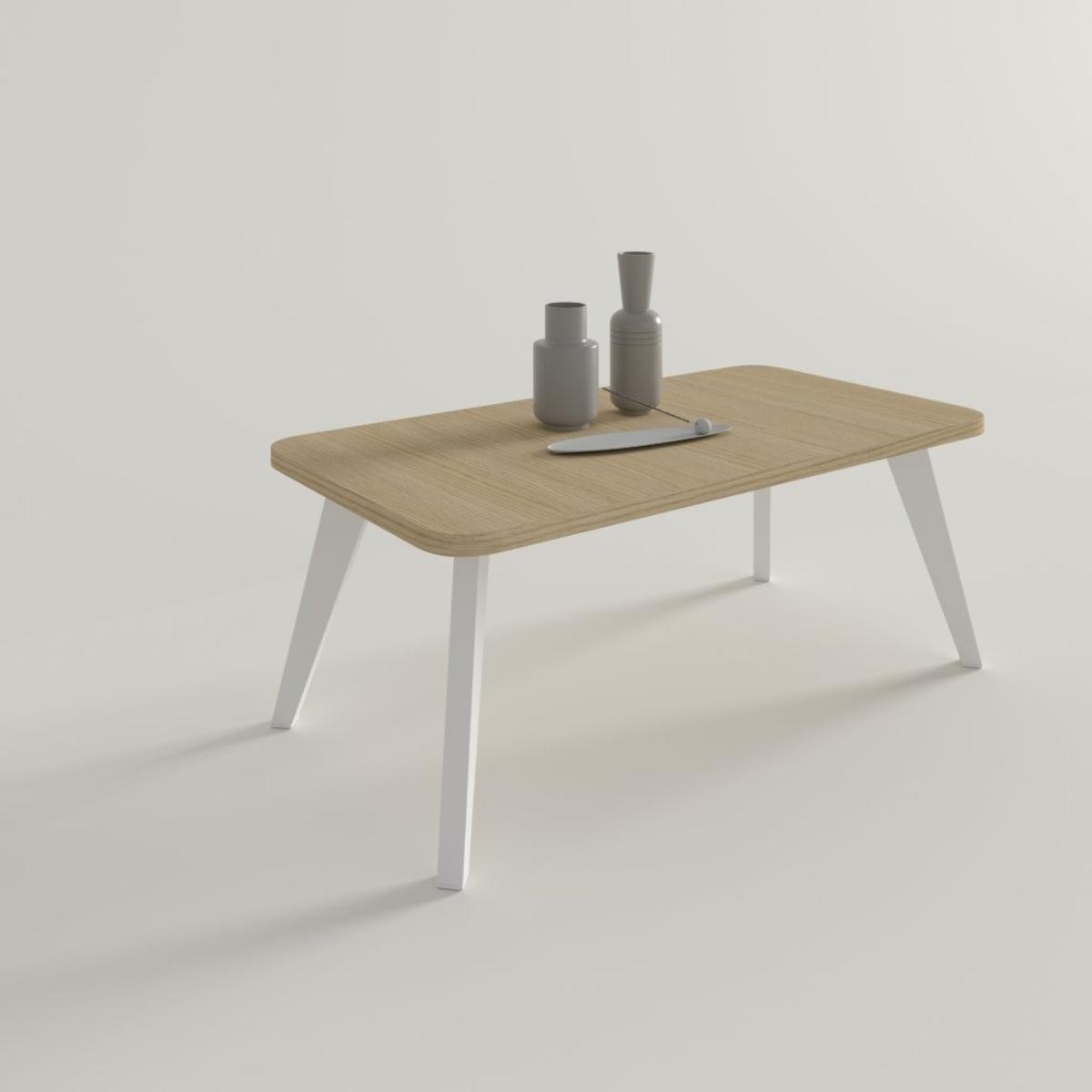Nuestra mesa de centro de 110 x 60 cm destaca por su tapa con forma, una elección de diseño que se aleja de las aristas rígidas para ofrecer un contorno más orgánico y fluido. Esta silueta curva, sumada a sus patas metálicas inclinadas, confiere al mueble una estética ligera y muy actual, evocando el mejor diseño nórdico con un toque industrial. Es la pieza perfecta para quienes buscan un salón con movimiento y un estilo que invite al confort.