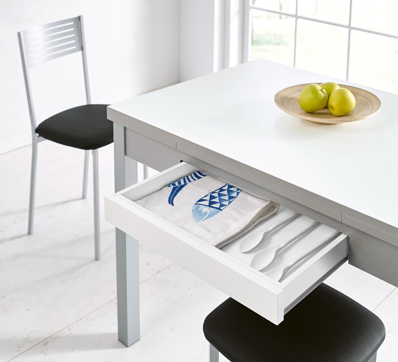 Mesa de cocina disponible en cuatro medidas según tu espacio en la cocina, las cuatro medidas extensibles para cuando tengas invitados.