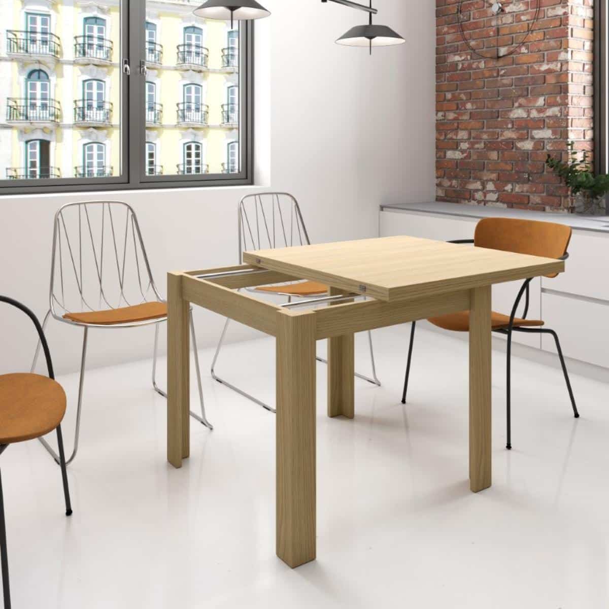 Las patas cuadradas le dan un aire de solidez y estabilidad, mientras que su mecanismo de apertura tipo libro es súper práctico y moderno. Es como tener dos mesas en una, perfecta para cualquier ocasión. ¿Te la imaginas en tu comedor?
