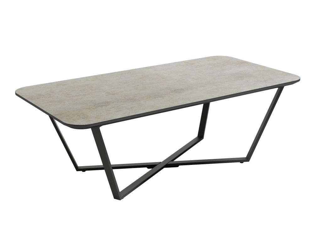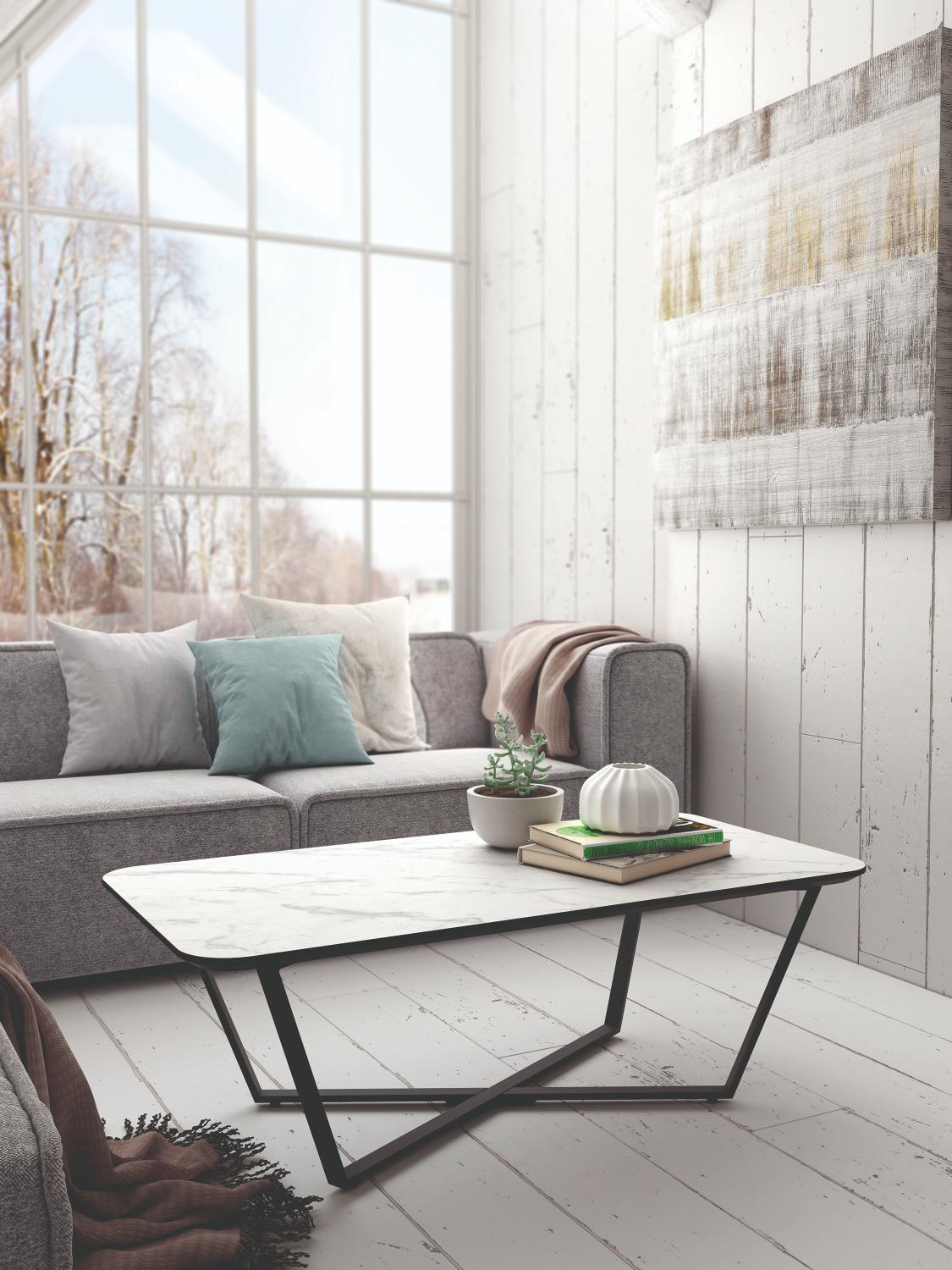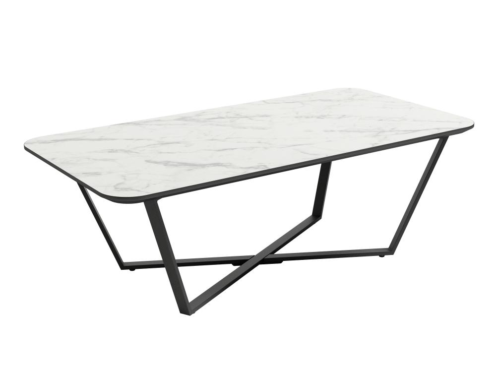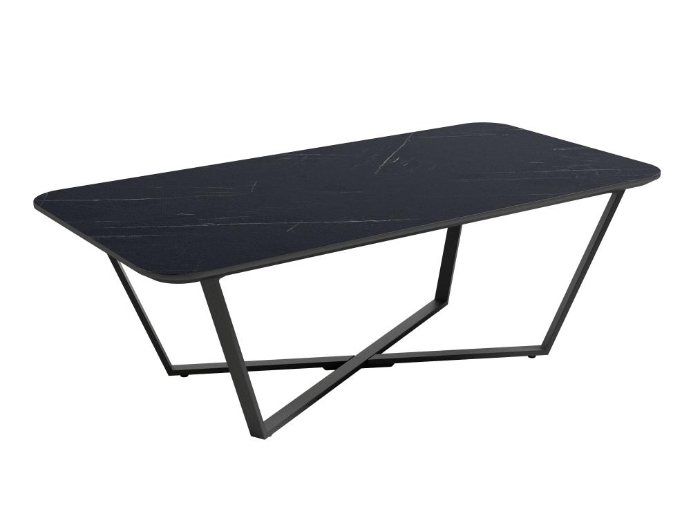 Mesa de centro con forma rectangular, esquinas redondeadas ideales cuando hay peques en casa o para no darse golpes y pata metálica en color negro de diseño moderno.