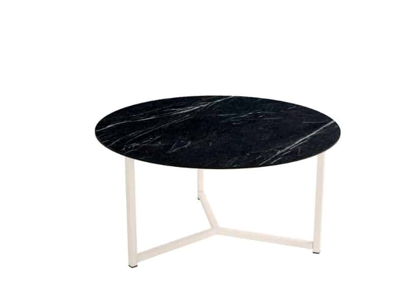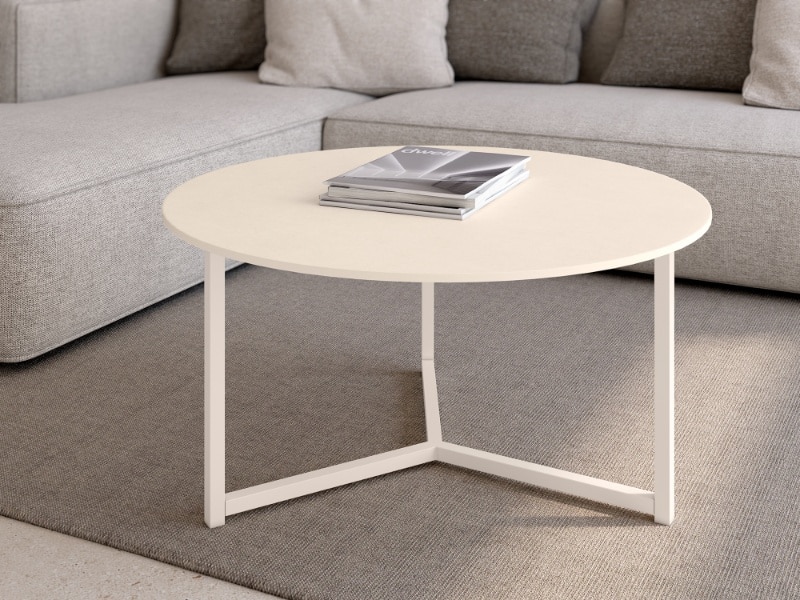 Una mesa de centro redonda con estructura metálica y tapa de porcelánico es una elección excelente para darle un toque moderno y elegante a tu salón. Esta combinación de materiales no solo es estéticamente atractiva, sino también muy resistente y fácil de mantener.