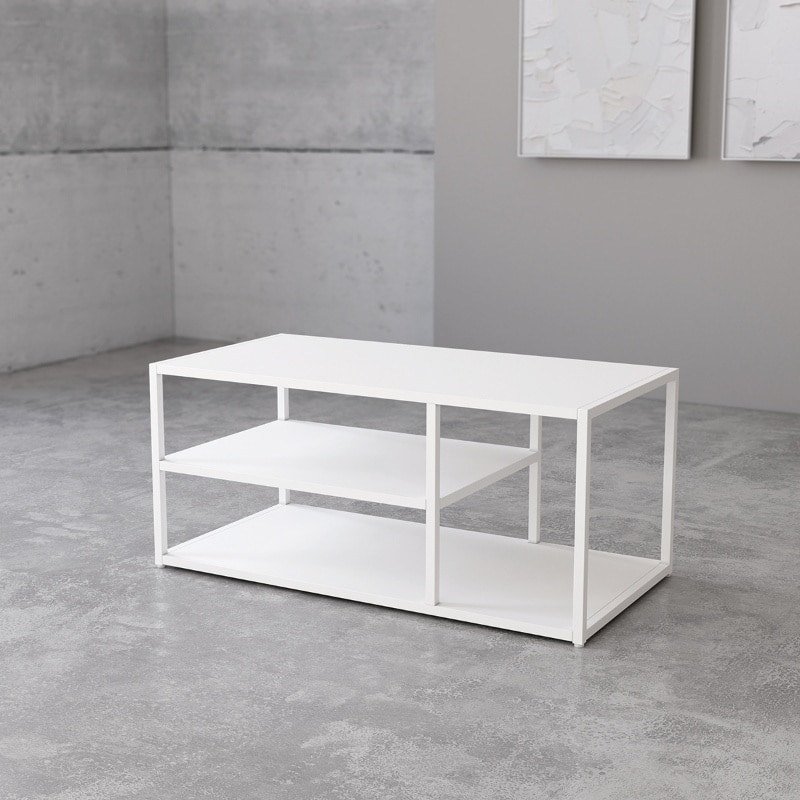 Esta mesa de centro destaca por su diseño moderno y minimalista, caracterizado por líneas limpias y una estructura metálica sencilla. Su funcionalidad se ve reforzada por sus dos niveles de almacenamiento, ideales para organizar revistas, libros u otros objetos. La mesa está fabricada íntegramente en metal, lo que garantiza su durabilidad y resistencia. Se ofrece en dos acabados distintos: negro y crema, cada uno con sus propias características y ventajas.