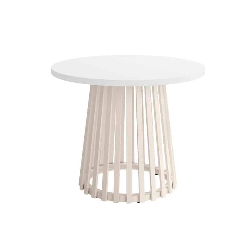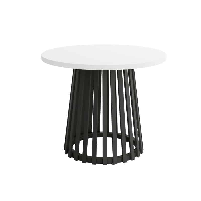Esta mesa auxiliar redonda destaca por su diseño moderno y versátil, ideal para complementar cualquier espacio de tu hogar. La tapa, disponible en una amplia gama de colores, te permite personalizarla según tus gustos y la decoración de tu espacio. La estructura metálica, con un diseño geométrico distintivo, aporta un toque contemporáneo y se ofrece en dos acabados: marfil, para un ambiente cálido y acogedor, o negro, para un estilo elegante y sofisticado.