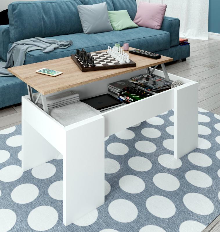 Mesa de centro elevable, muy práctica para una cena o comida más informal, al ser elevable también podrás utilizarla para diferentes tareas desde el sofá de casa.