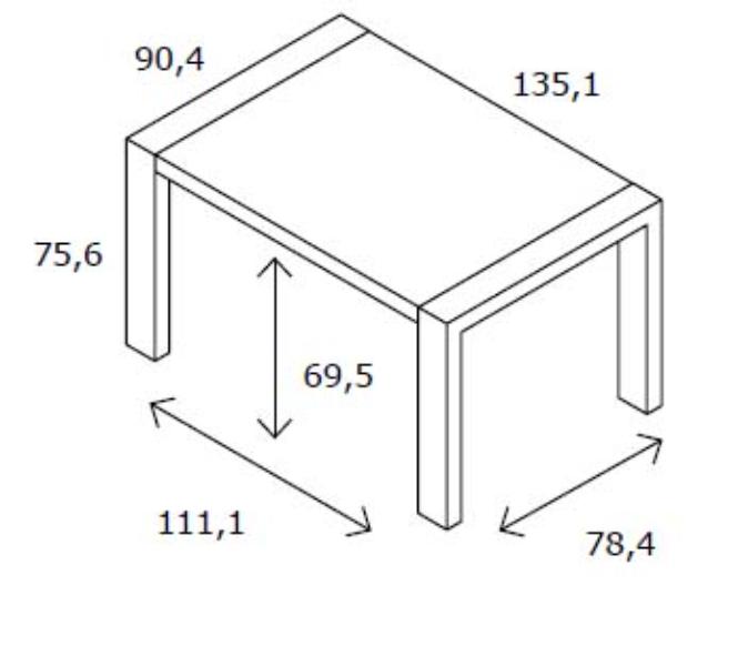 Mesa cerrada 135,1 cm largo x 90.4 cm fondo x 75,6 cm alto Mesa abierta 195,1 cm largo x 90.4 cm fondo x 75,6 cm alto