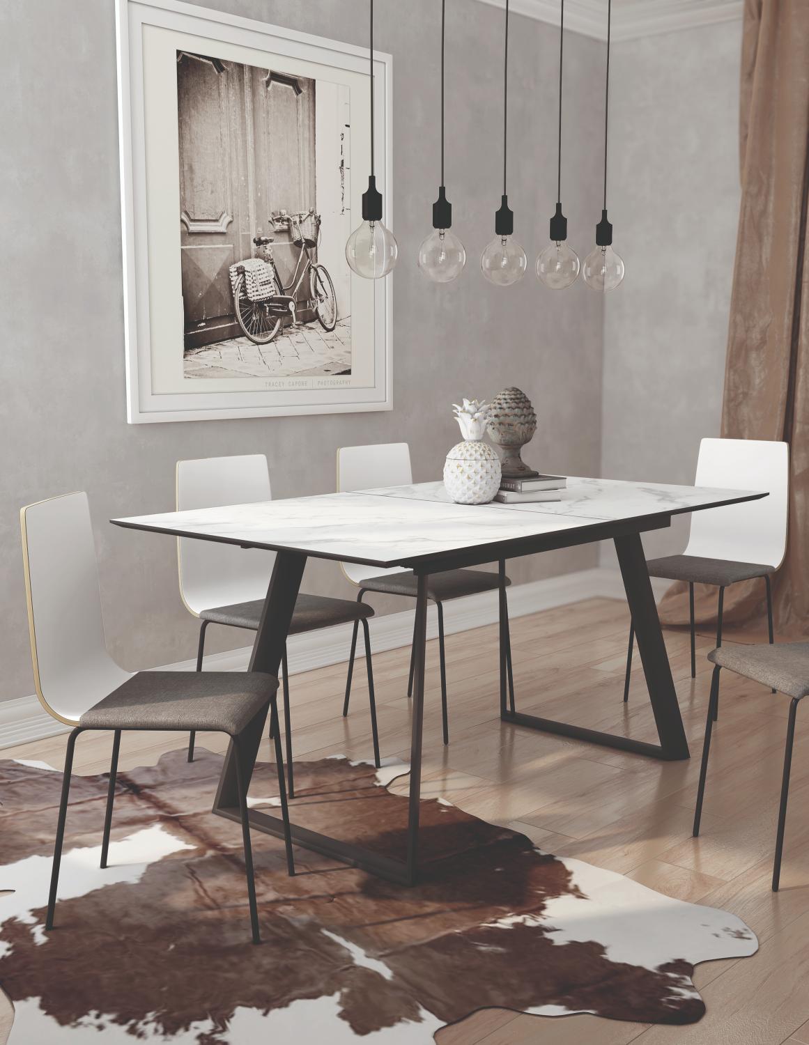 Mesa rectangular de 140 cm extensible a 180 cm con sistema de apertura fácil por la zona central de la tapa. Siempre con las patas en color negro, para darle ese diseño industrial y al mismo tiempo nórdico gracias a los diferentes acabados de la tapa, tienes hasta cinco colores distintos para elegir.