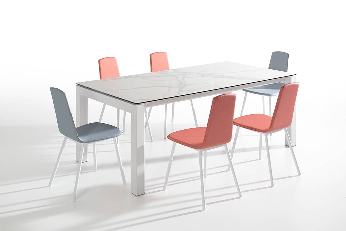 Mesa de cocina con pata de porteria de metal de tubo de 8cm x 8cm pintado en cuatro opciones diferentes de color, plata, negro, blanco y carbono.