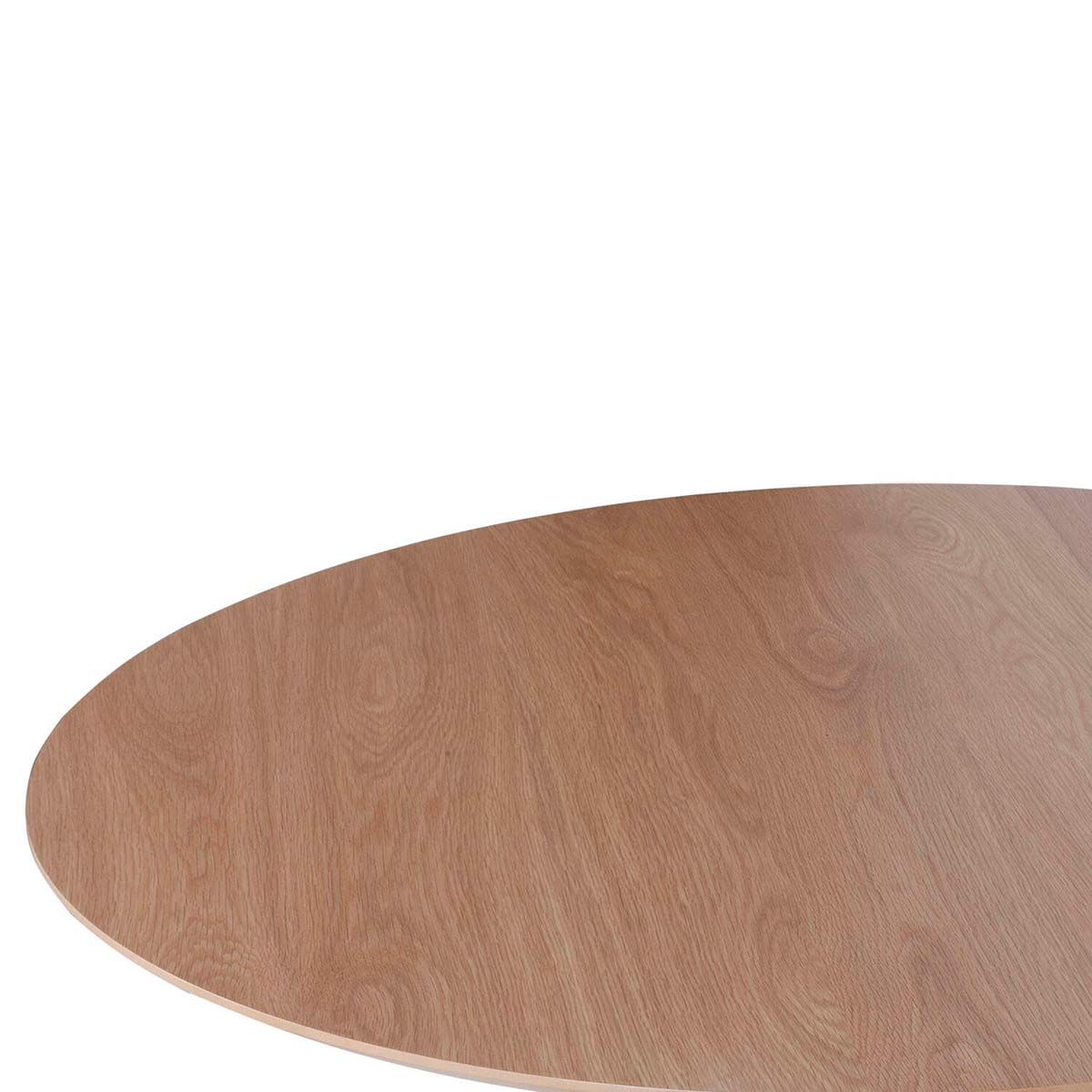 Mesa fija de madera de 100 cm de diámetro con una estructura robusta en madera lacada en negro y tapa acabado en roble de 18mm de espesor.
