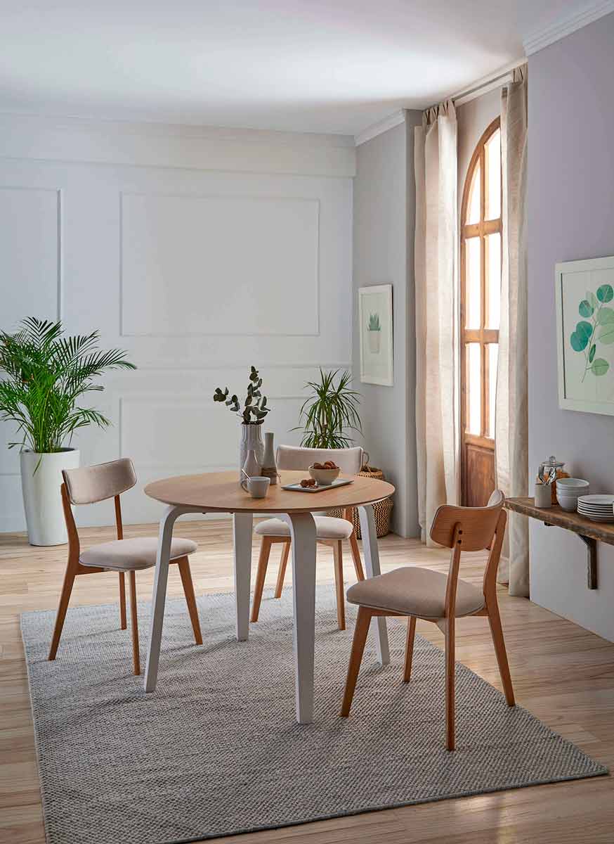 Su diseño en forma redonda y el de sus patas la convierten en una pieza moderna que se integra en cualquier estancia del hogar, ya sea para cocina ó salón.