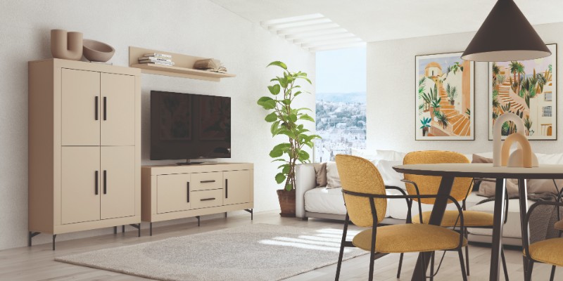 Con un diseño nórdico, tanto por las patas como por las líneas rectas y depuradas. Esta firma dispone de una amplia variedad de módulos para elegir según tus necesidades, donde podrás personalizar tu hogar elegiendo el tono, modelo de patas, de tiradores… Podrás completar tu estancia con mesas de comedor, mesas de centro, aparador, vitrina, te invitamos a que veas toda la colección.