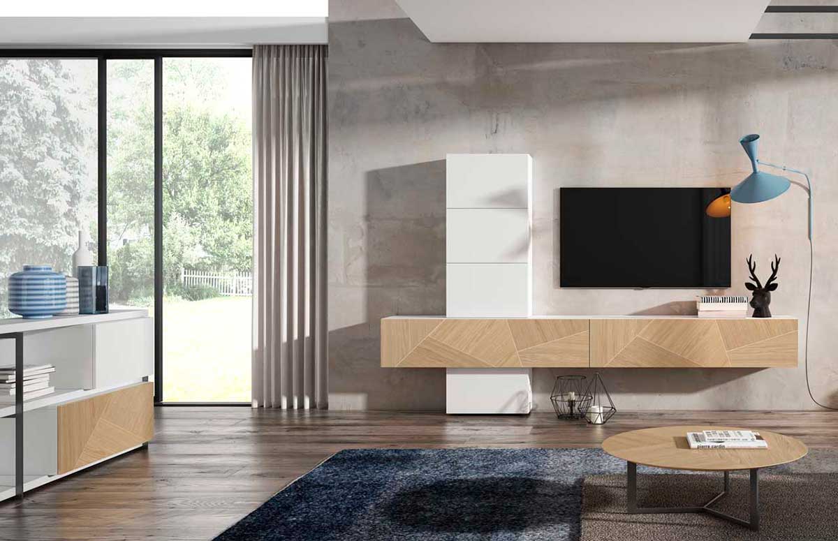 Si eres de los que piensas, que el diseño está reñido con la capacidad, te queremos presentar esta original composición como muebles salón. Compuesta de una columna con puertas totalmente integradas en la composición y un módulo suspendido para darle ligereza a la pieza.