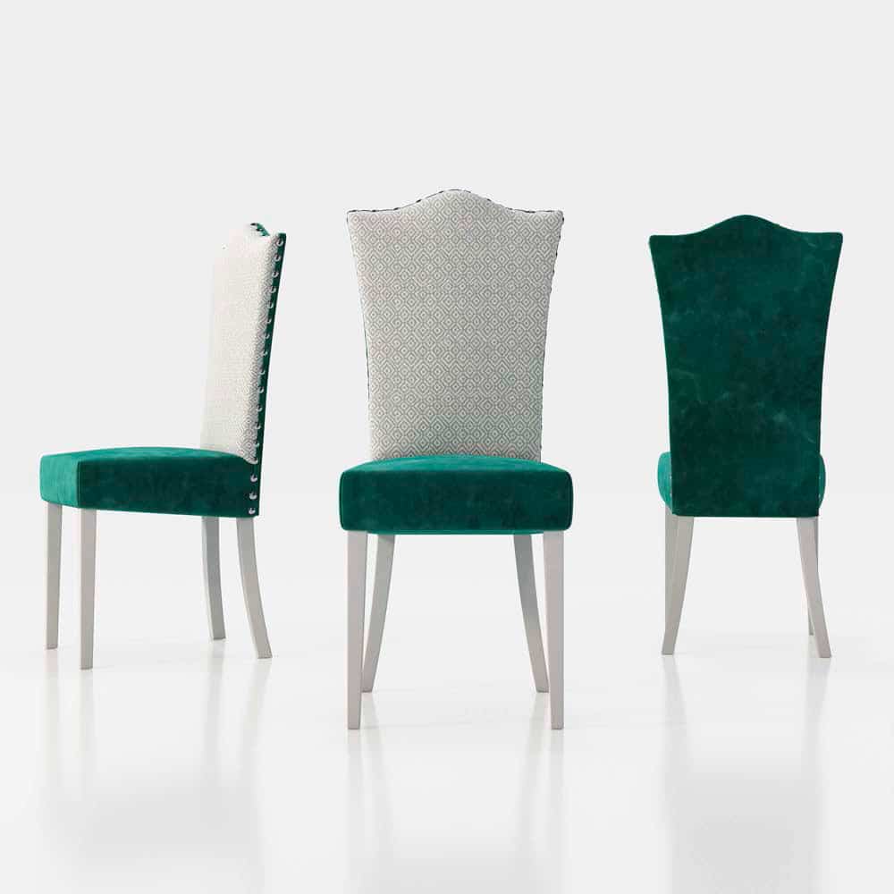 Silla de comedor adaptable a varios estilos, según el color de la tapicería. Al ser una silla de pata recta, se puede combinar con un mueble de salón de líneas rectas y modernas. Si le combinamos una tapicería de cuadrito vichy o liso, le damos el toque moderno.