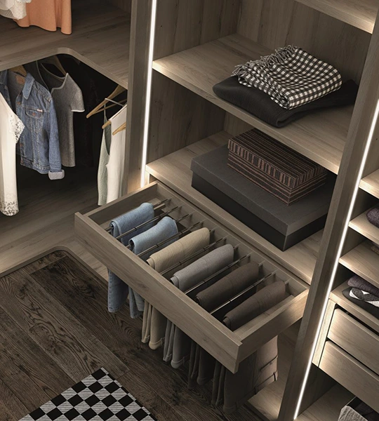 Esa facilidad para adaptar el mobiliario de organización es lo que permite que toda la ropa que quieras incluir en él esté disponible para ti. Es un espacio más eficiente e inteligente para ti.