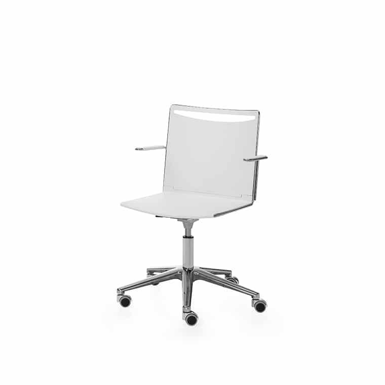 Diseñada por Alberto Basaglia y Natalia Rota Nodari, es una silla de estudio que puede representar la renovación. Un diseño innovador extremadamente cómodo basado en la ligereza, luz, líneas rectas para nuevos tiempos. Como podemos ver en los detalles fotográficos la podemos elegir con ruedas ó con patas fijas con patin. Se caracteriza por ser un modelo ligero, polivalente, ya que también se usa para reuniones de grupos empresariales, adaptable y ergonómica.