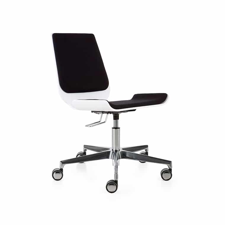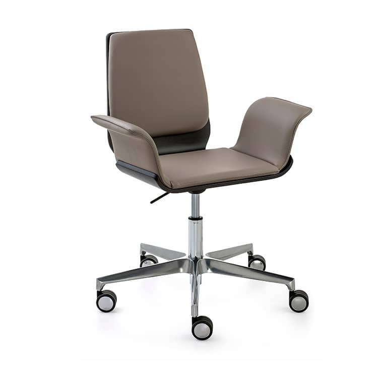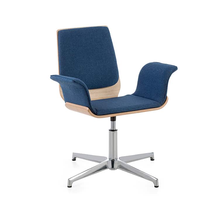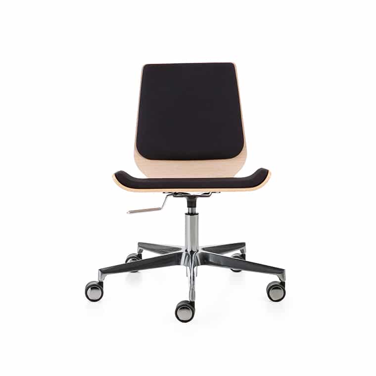 Un diseño de Rafa Ortega en el que se da protagonismo a la naturaleza, donde las formas evocan suaves curvas que invitan al recogimiento y lo esencial es el contacto con la madera. Su estructura le confiere elasticidad y confort. Es un modelo de silla operativa que se puede hacer con los brazos grandes o pequeños y también la base puede ser fija ó con ruedas, tal y como podemos apreciar en los detalles fotográficos. Se distingue por su elegancia, ergonomía y por ser una silla de trabajo con mucha personalidad.