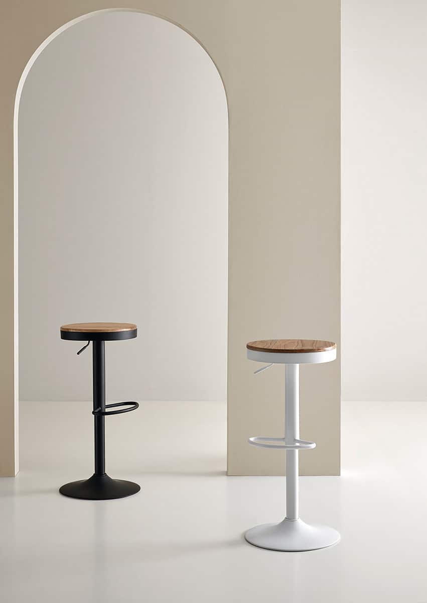 Taburete con asiento en madera y estructura en metal.