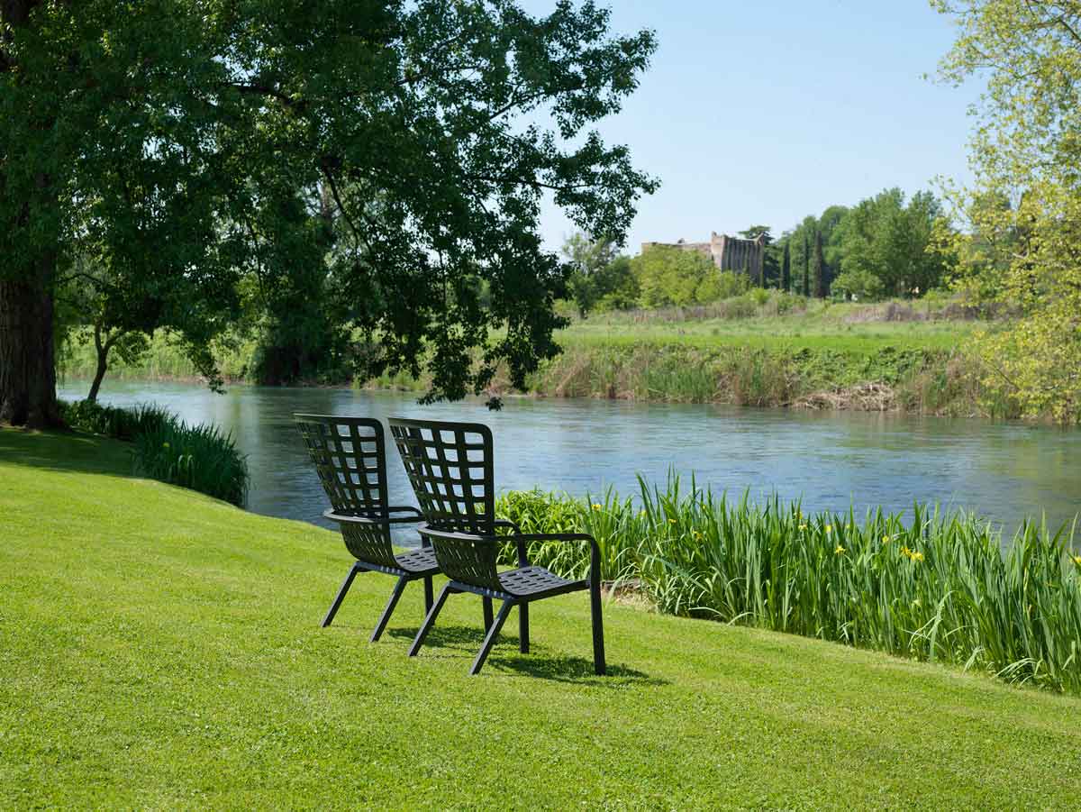 El sillón Folio es un sillón relax para exterior realizado en resina de fibra de vidrio perforado con motivos de cuadros y acabado mate. El sillón presenta un envolvente respaldo conectado sin solución de continuidad al generoso asiento rebajado, un único y refinado abrazo estructural reclinable en dos cómodas posiciones.
