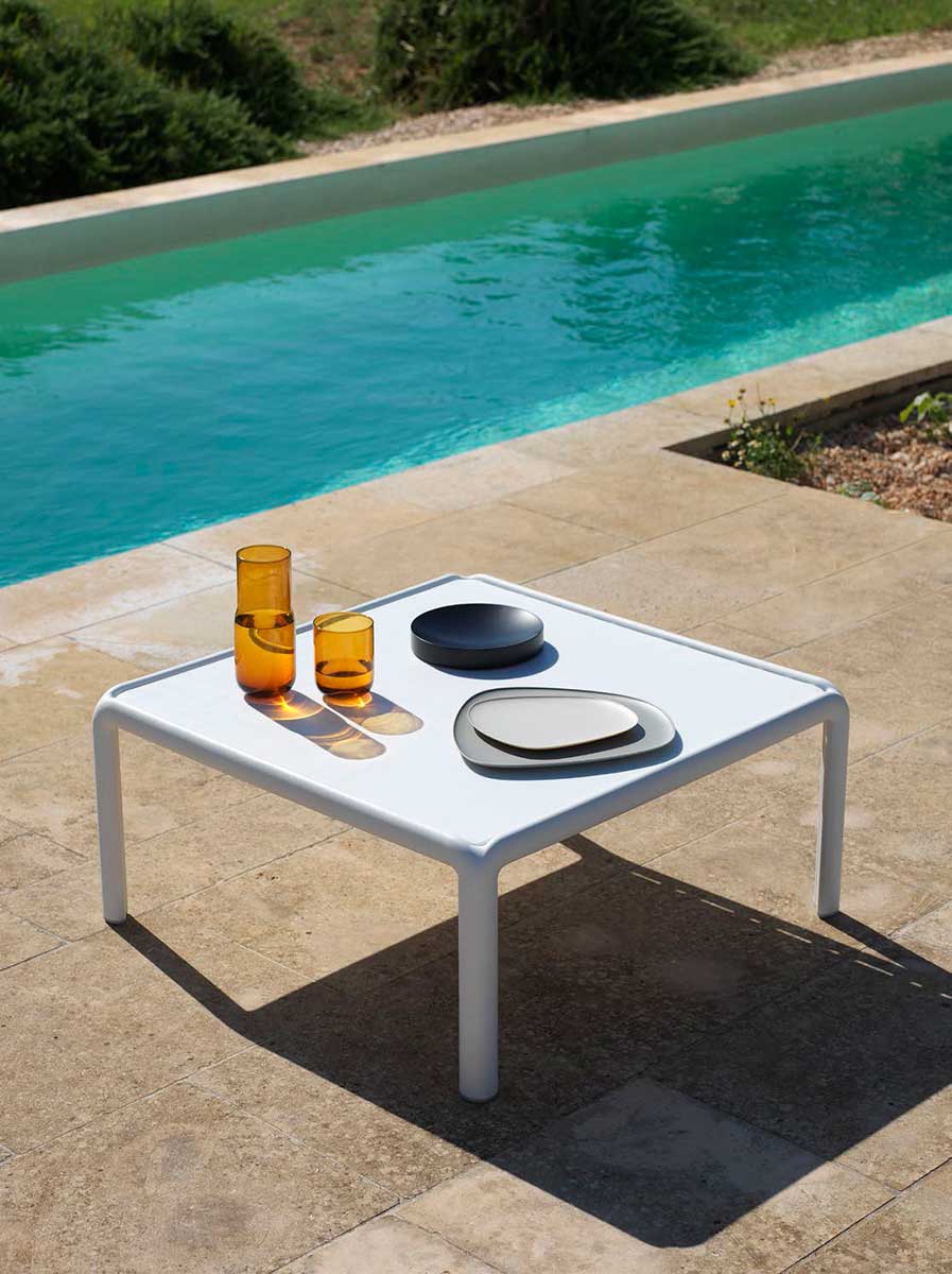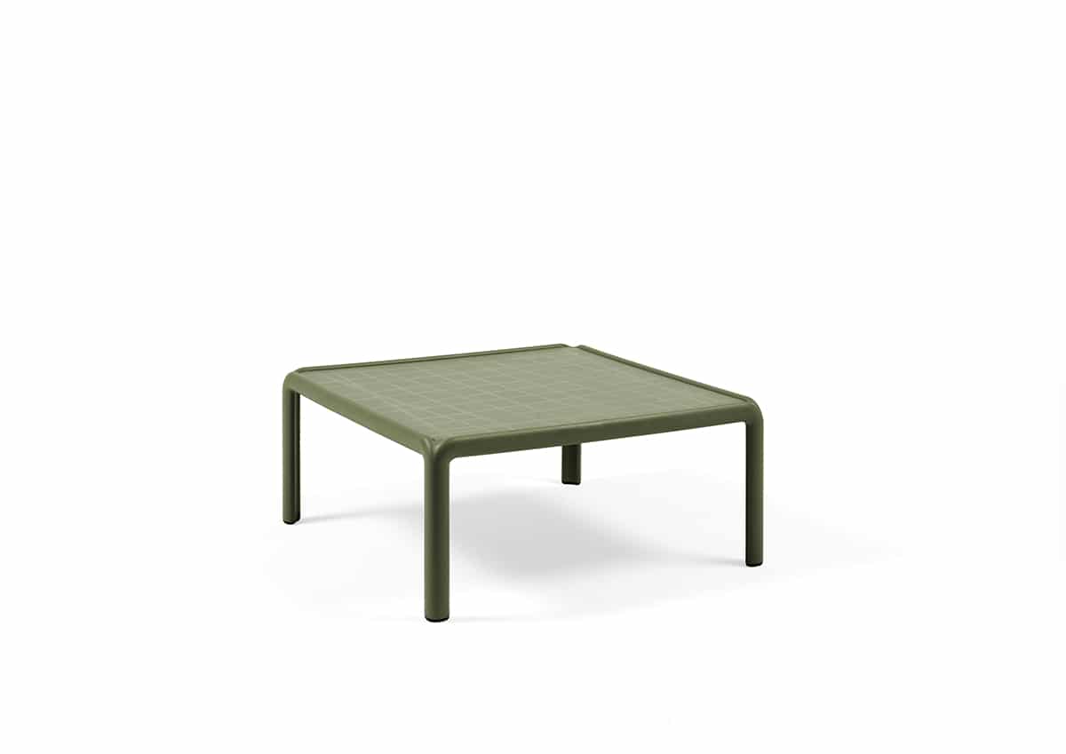 La mesa baja auxiliar de la colección Komodo, es ideal para terraza, jardin y piscina. Se puede utilizar como mesa de centro ó de rincón.