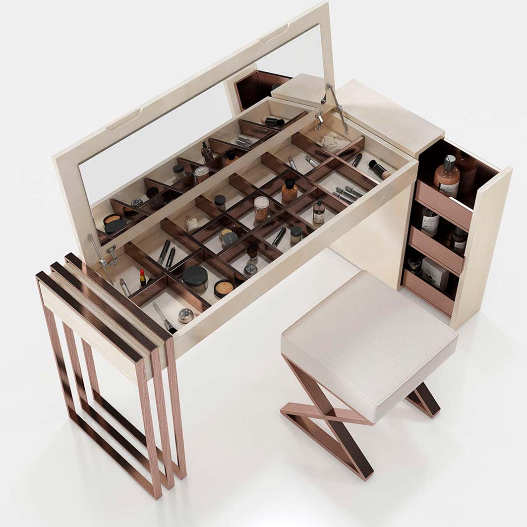 Los tocadores lejos de ser una moda pasajera han llegado a nuestro hogar para quedarse, disponiendo hoy día de funcionalidades adaptadas a las necesidades del cliente actual. Ergonomía, espacio de almacenaje, etc…son incorporaciones que hacen de este mueble nuestro mejor aliado para el cuidado personal.