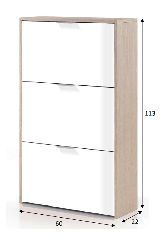 Zapatero de 60 cm ancho x 22 cm fondo x 113 cm alto.